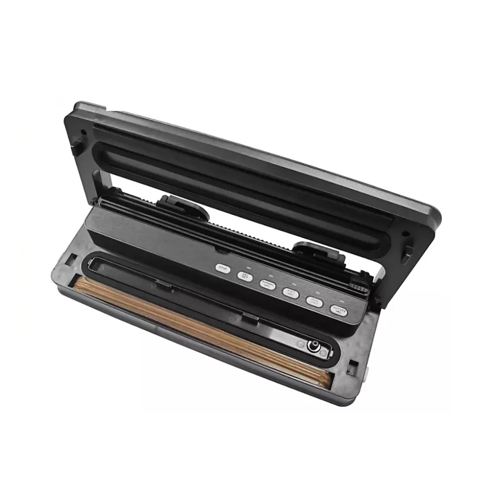 Appareil de mise sous vide LITTLE BALANCE 8769, puissance 150W, dimensions compactes 39.8 x 16.5 x 8.1 cm, compatible sacs et rouleaux jusqu’à 30 cm, deux vitesses d’aspiration, porte-rouleaux réglable et coupe-rouleau intégré, idéal pour prolonger la conservation des aliments jusqu’à cinq fois plus longtemps.