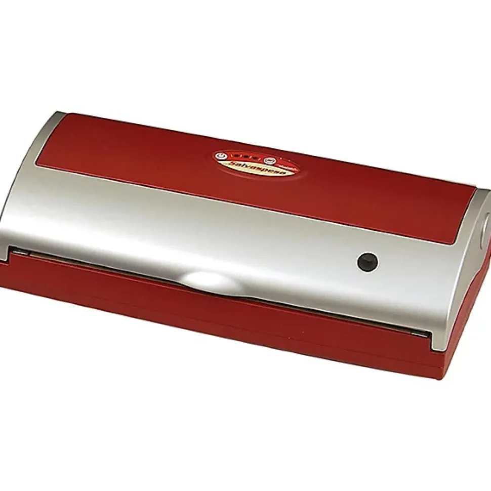 Appareil à emballage sous vide 180w Reber – L’appareil à faire le vide 9342NR de la célèbre marque REBER est un appareil de qualité professionnelle.Très simple à utiliser, grâce à sa puissante aspiration faire le vide se fait très rapidement.L’appareil 9342NR fonctionne automatiquement mais vous pouvez également passer en mode manuel.La machine à faire le vide 9342NR de Reber est livrée avec 20 sachets de dimensions 20x30cm. – Puissance : 180 WCapacité d’aspiration : 10dm3/mmAppareil à faire le vide automatiqueQualité d’aspiration professionnelleBarre de soudage 32 cmSoudage automatique avec valve d’ouverture manuelle et dosage de vide avec luciole lumineuseChambre de décompression sous-vide avec système de sécurité pour stopper les liquidesFonctionnement automatique avec possibilité de passage au mode manuelFonctionne en continu sans attendre le refroidissement de l’appareilLivrée avec 20 sachets 20X30 cm, 100 microns aux normes d’hygiène (triples épaisseurs polythylène-nylon-polythylène)Possibilité de raccorder un accessoire d’aspiration pour conteneursDimensions : 37,6 x 16,8 x 10 cmPoids : 3.2 kgCouleur : Rouge satin