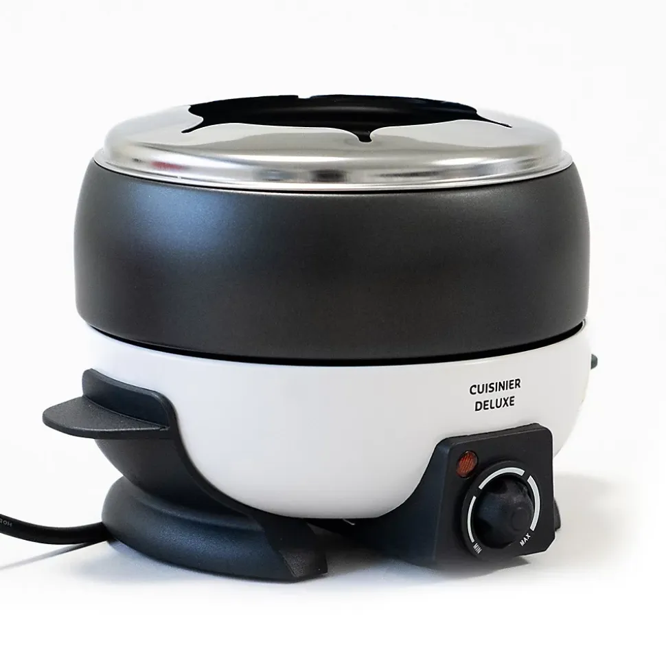 - Plaque chauffante en aluminium : La plaque chauffante de qualité supérieure en aluminium assure une répartition uniforme de la chaleur pour une fondue parfaite.