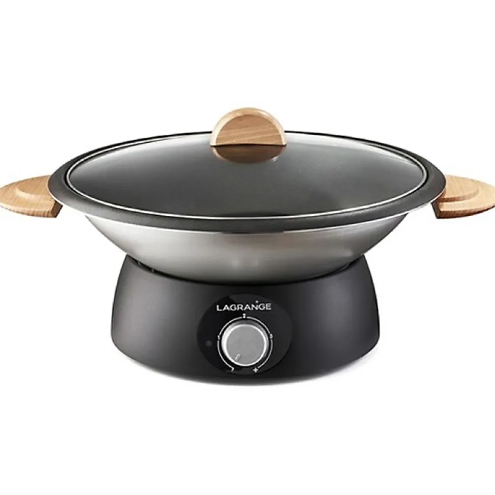 Wok : pour cuire et maintenir au chaud tous les plats complets exotiques ou traditionnels. Fondue : permet de réaliser toutes les fondues : à l’huile, au bouillon, au fromage. Thermostat réglable pour adapter la température de cuisson ou maintenir au chaud. Poignées en bois verni, revêtement anti-adhésif intérieur. Fabrication française.