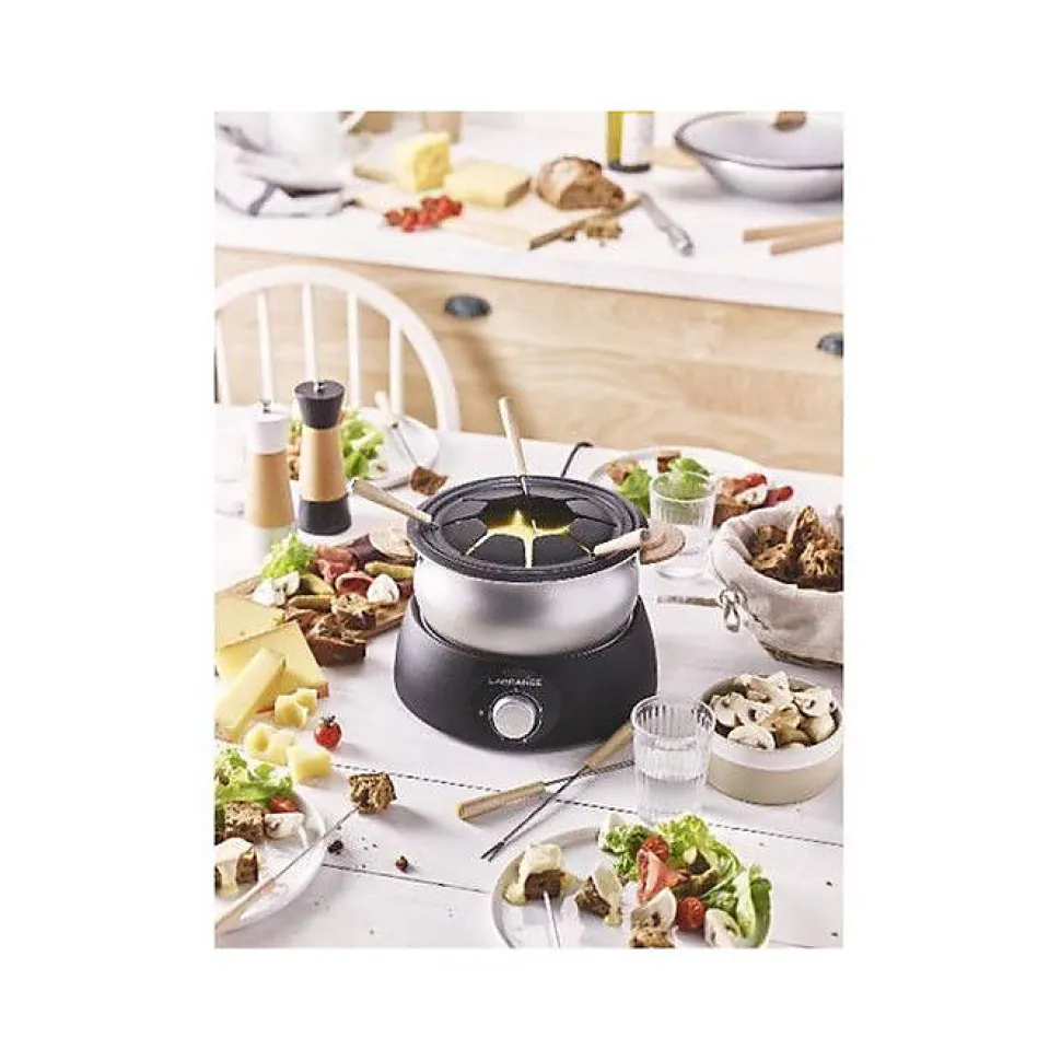 Découvrez l’appareil à fondue LAGRANGE 349013, idéal pour des moments conviviaux. Avec sa puissance de 900 W et sa cuve en aluminium anti-adhésive, il est livré avec 8 fourchettes et des poignées en bois, parfait pour partager des repas entre amis ou en famille.
