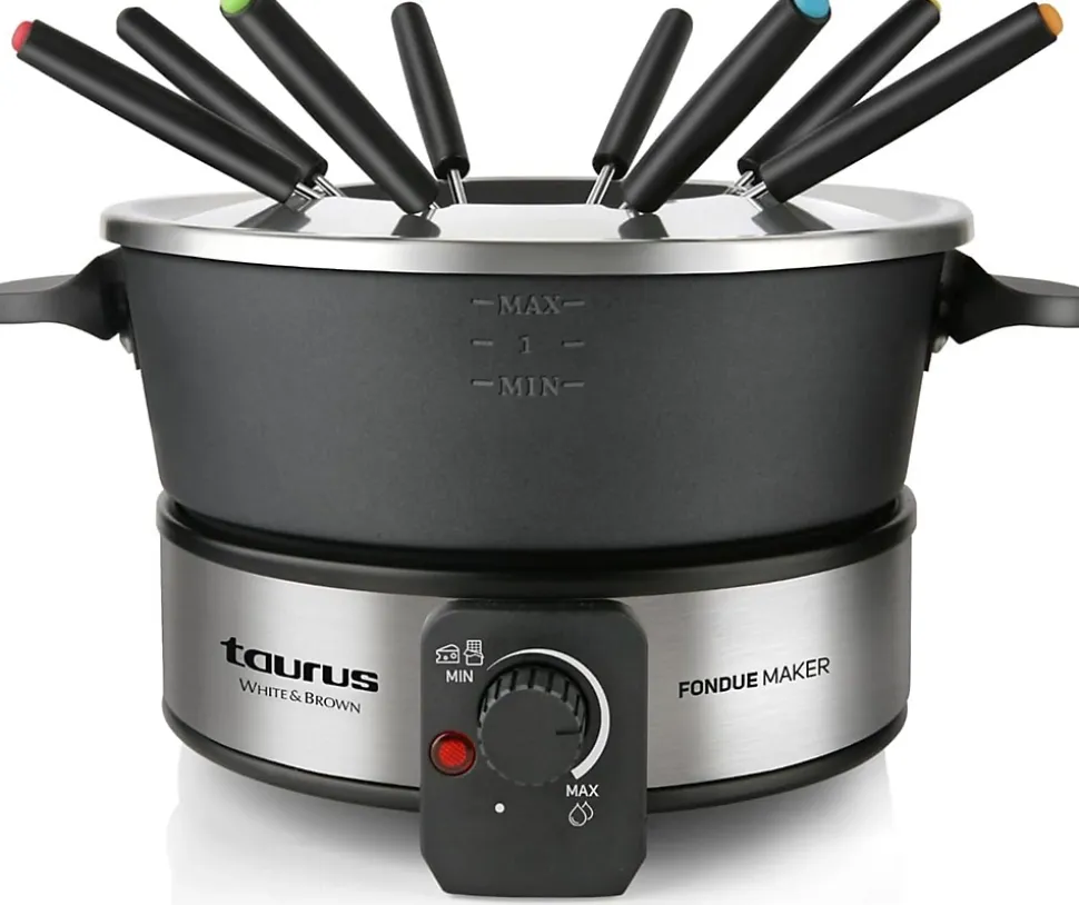 Profitez de fondues à l’huile, au fromage, au chocolat ou au bouillon avec cet appareil à fondue noir de 1000 W. Sa cuve de 2 L permet de servir jusqu’à 8 personnes, parfait pour les repas en famille ou entre amis. Le thermostat réglable jusqu’à 200 °C garantit une cuisson précise adaptée à tous types de fondue. La cuve antiadhésive sans PFOA est facile à nettoyer et compatible lave-vaisselle. La base en acier inoxydable avec poignées isolantes et pieds antidérapants assure stabilité et sécurité pendant l’utilisation. Huit fourchettes colorées incluses permettent d’identifier facilement chaque portion pour un moment convivial et gourma