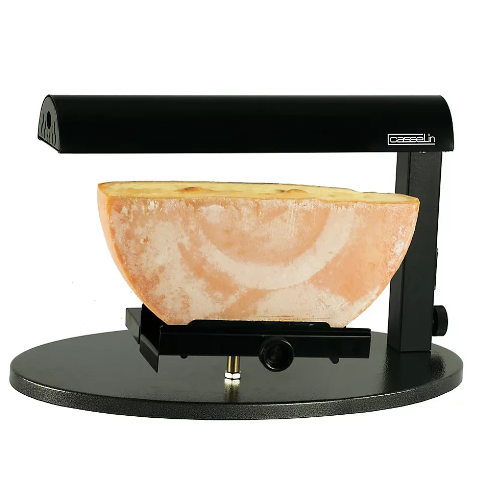 Appareil à Raclette Professionnel – demi meule – CasselinBoîtier de chauffe horizontal Interrupteur marche/arrêt Résistance Porte fromage réglable en hauteur et inclinable Appareil à raclette pour demi-meule de fromage.Appareil de chauffe pour faire fondre le formage et le déposer directement sur votre raclette. Raclez le fromage facilement à l’aide du couteau à raclette.Puissance : 600 W / 230 VDimensions : L 520 x P 320 x H 310 mmPoids : 4 kg