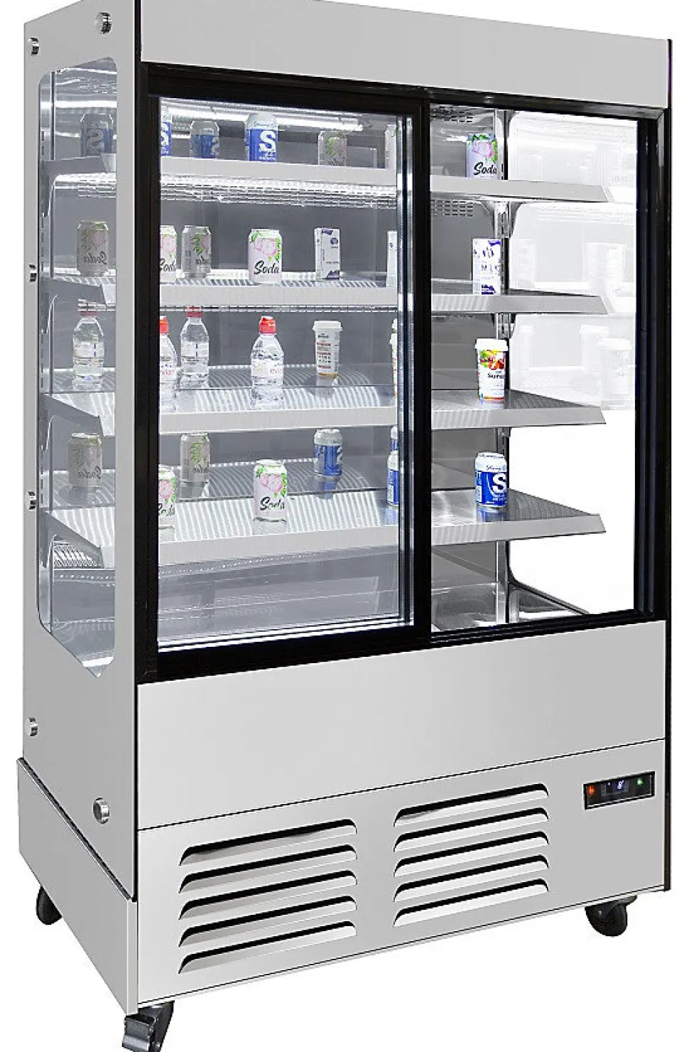 Armoire à boisson vitrée de 580 litres de chez Atosa en acier inoxydable à l’intérieur et l’extérieur sauf le dos et dessous qui est en acier galvanisé. Vitre avant coulissante double vitre sécurité, non verrouillable, cette vitrine réfrigérée positive est équipée d’un éclairage LED, de 4 roues de série avec les freins en façade et d’un thermostat avec écran LCD Dixell pour contrôler la température. Armoire à boisson vitrée de 580 litres de chez Atosa en acier inoxydable à l’intérieur et l’extérieur sauf le dos et dessous qui est en acier galvanisé. Vitre avant coulissante double vitre sécurité, non verrouillable, cette vitrine réfrigérée positive est équipée d’un éclairage LED, de 4 roues de série avec les freins en façade et d’un thermostat avec écran LCD Dixell pour contrôler la température. Avec 4 étagères, le gaz réfrigérant est de R290, la température interne de +2ºC à +8ºC.La température ambiante 25°C. Compresseur (HP) 1 Embraco.Dimension (P x H) mm : 700 x 1830Dimension étagères : 1147 x 275Tension électrique : 220v/50hzAmpères (A) : 8Puissance (W) en fonction de la longueur : 1590 – 1660 Les armoires ATOSA sont livrées avec un film de protection transparent. Nous vous conseillons de ne pas l’enlever afin de conserver cette couche de protection supplémentaire sur votre armoire réfrigérée. l0.1- L0.1- P60- h191- Acier Inoxydable