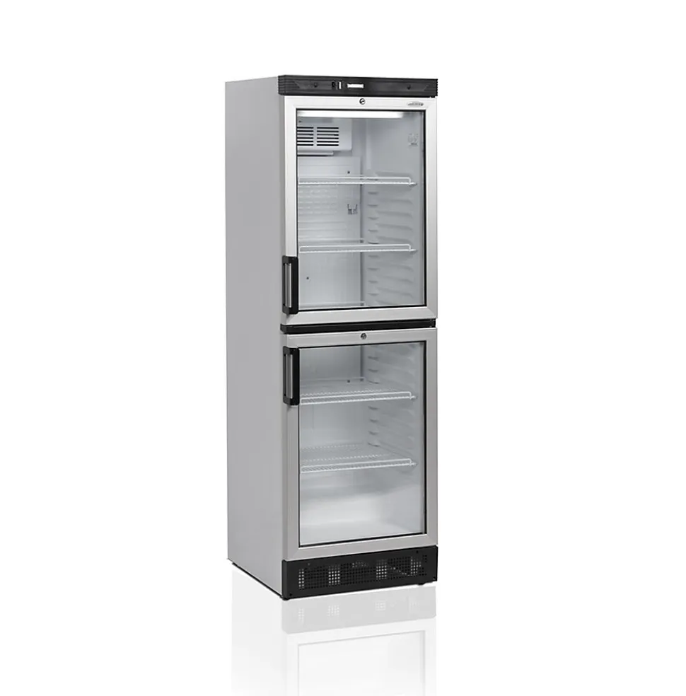 Armoire à boissons professionnelle blanche double portes vitrées. 2 Portes vitrées à charnièresPortes réversiblesTablettes ajustables2 Pieds ajustablesÉclairage intérieur LEDRefroidissement par ventilateurCapacité canettes : 448 de 330 ml / 294 de 500 mlCapacité bouteilles : 210 de 330 ml / 210 de 500 ml PETPlage de la température : 2 à 10°CNombre de tablettes : 5 clayettes blanchesDimensions des tablettes : 498 x 405 mm2 RoulettesFinition extérieure : blancFinition intérieure : ABSDimensions intérieures : L 470 x P 440 x H 1555 mmDimensions emballés : L 680 x P 710 x H 1940 mm