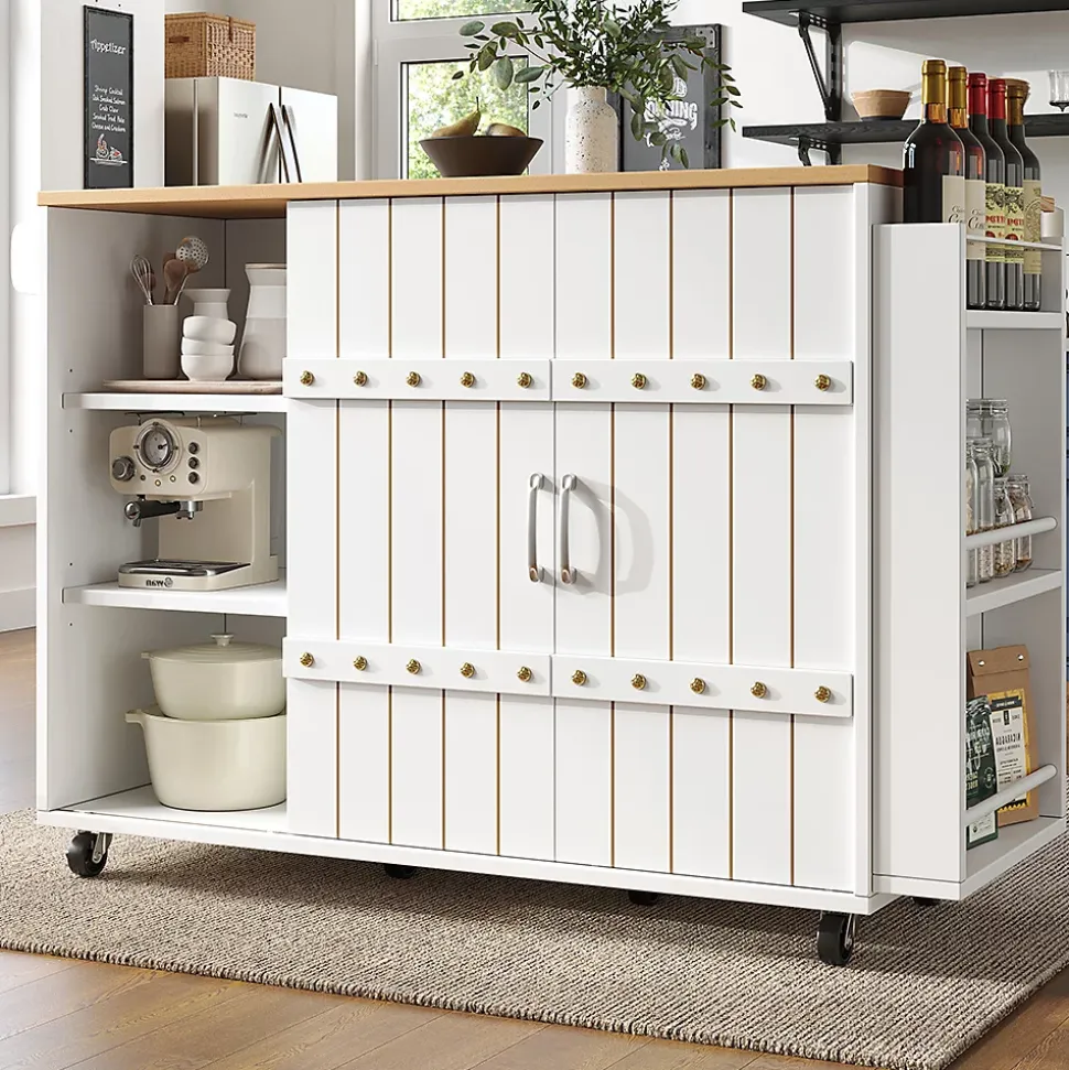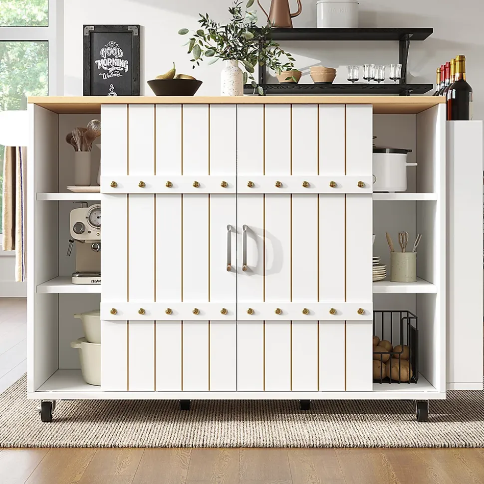 SpécificationsCouleur principale : BlancMatériau principal : MDFDimensions du produitLongueur assemblé (cm) : 110,00Largeur assemblé (cm) : 42,00Hauteur assemblé (cm) : 90,00Poids du produit (kg) : 46,75Dimensions du colisSous-article 1 : 95,25 * 45,09 * 18,42 cm 24 kgSous-article 2 : 125,1 * 49,53 * 13,97 cm 26,75 kgCaractéristiques du produitDimensions du produit : îlot de cuisine longueur 110 cm, largeur 42 cm, hauteur 90 cm. Ce chariot de cuisine dispose d’un plateau rabattable qui peut être utilisé comme table à manger lorsqu’il est déplié et qui mesure 70 cm de long une fois déplié.Conception détaillée : matériaux de haute qualité et design raffiné. Le plateau en bois MDF haute densité présente une structure naturelle et durable ; avec ses poignées en aluminium et son design élégant en 3D, il est à la fois esthétique et pratique et s’intègre facilement dans un style de vie moderne.Espace de rangement polyvalent : avec trois tiroirs, une étagère latérale, un porte-serviettes et des étagères réglables, vous pouvez facilement ranger vos couverts, épices, bouteilles de vin, boissons et autres ustensiles de cuisine.