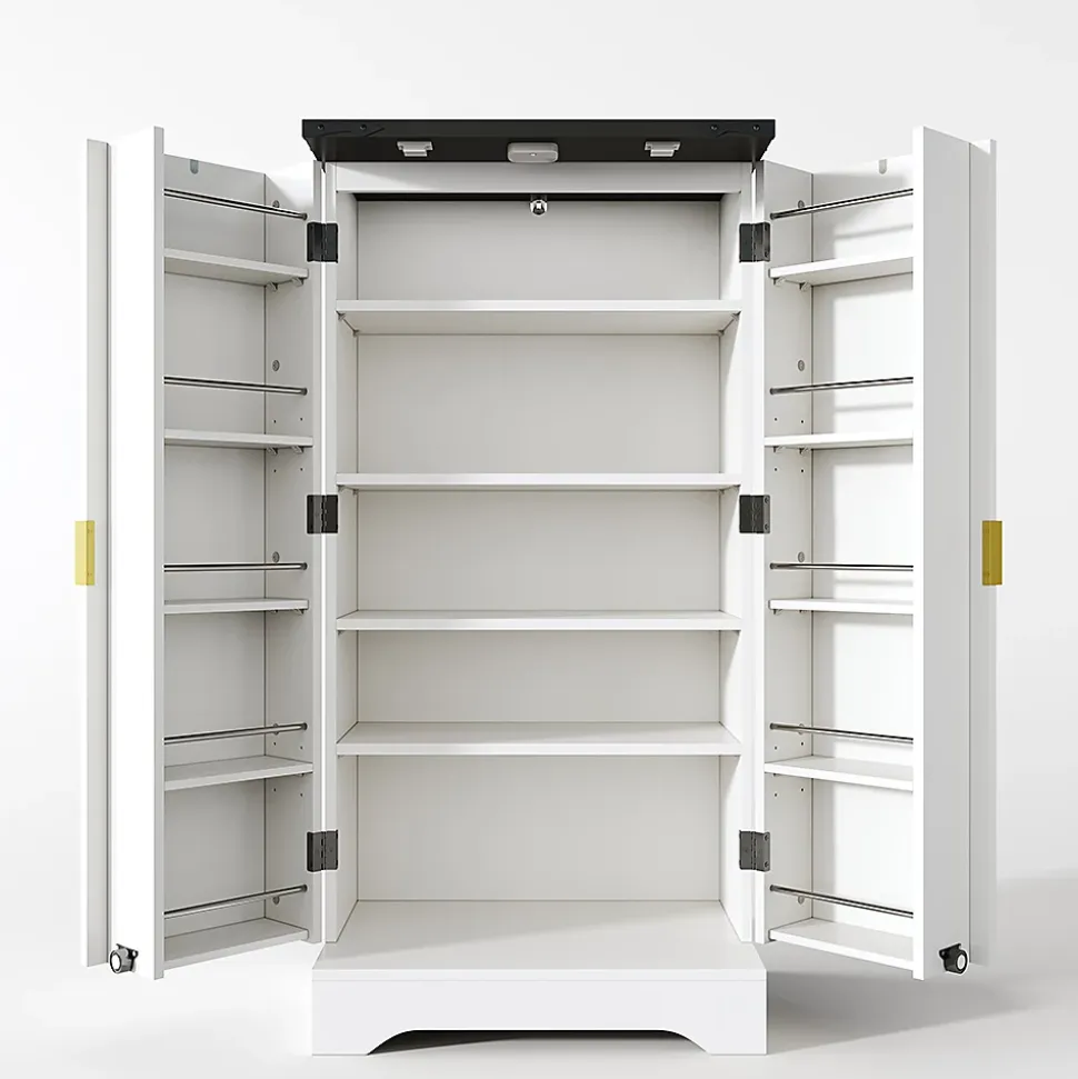 - Rangement spacieux et compartimenté : l’armoire comprend deux étagères réglables en hauteur et deux tablettes de porte réglables qui peuvent être utilisées ou retirées selon les besoins. Rangement flexible des aliments, de la vaisselle, des appareils, des épices et bien plus encore. La construction fermée protège de la poussière et garantit un rangement ordonné.