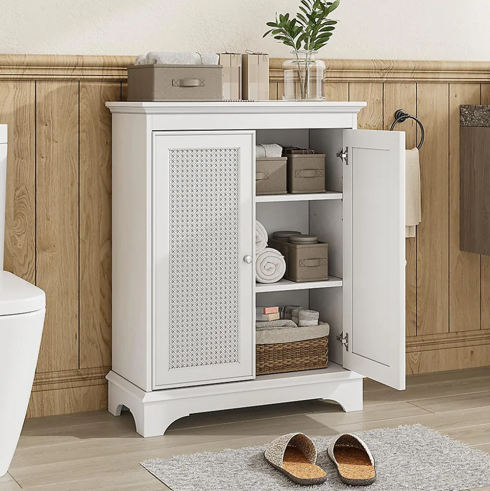 - 【Design bohème】Alliant un style moderne à des éléments bohèmes en rotin, l’armoire de salle de bain offre un grand espace de rangement et des étagères amovibles à l’intérieur. C’est un excellent choix pour votre salon, votre salle de bain et votre cuisine.
