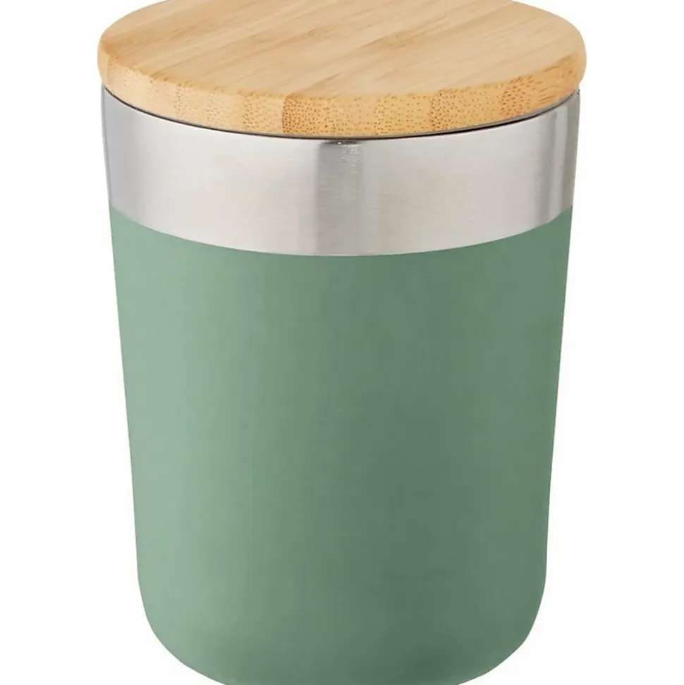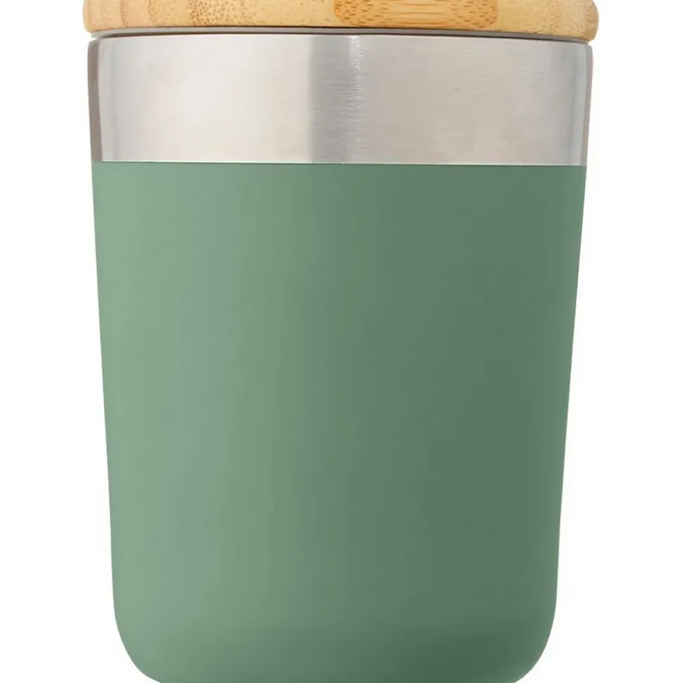 Matériau : Bambou, acier inoxydable. Sans BPA. Isolation en cuivre, Double paroi, Isolation sous vide, Couvercle en bois. Capacité : 300ml. Emballage : Carton, boîte cadeau, recyclé. Conforme à la norme de sécurité : testé sur les phtalates.