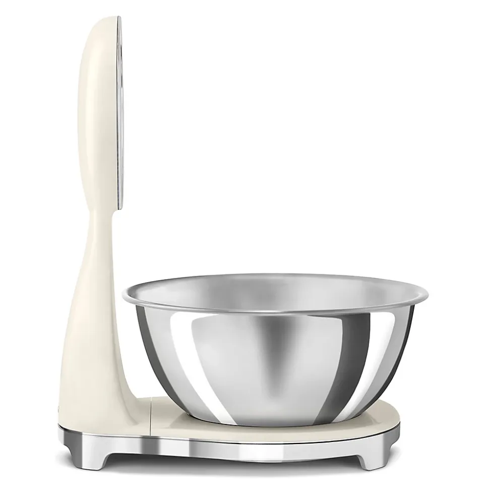 Balance de cuisine électronique 5kg-1g crème Smeg – Balance de cuisine Années 50 KSF01CRWW de Smeg. – Type : Balance de cuisine.Type : Analogique et numériqueGamme : Années 50.Type : Electronique.Pesée maximale (en kg) : 5.Précision (g) : 1.Matière plateau : Base plastique.Ecran : Oui.Type d’écran : LED et analogique.Type de commandes : Levier.Bluetooth : Non.Tare Automatique : Oui.Conversion des liquides : Oui.Autre(s) fonction(s) : Mode veille, Mesure de l’unité.Type de chargement : Par USB.Interrupteur : Oui.Durée de vie de la batterie : 36 heures.Bol inclus : Oui.Fonction de tarage : OuiAlimentation électrique : Batterie rechargeableType de prise : Li-Ion 1200 mAhCâble USB-C : Oui.Longueur du câble d’alimentation : 39.Finition / Nuance : Brillant.Couleur : Crème.Couleur(s) secondaire(s) : Inox.Dimensions (cm) : 31.5 x 18 x 25Poids (g) : 1.59.