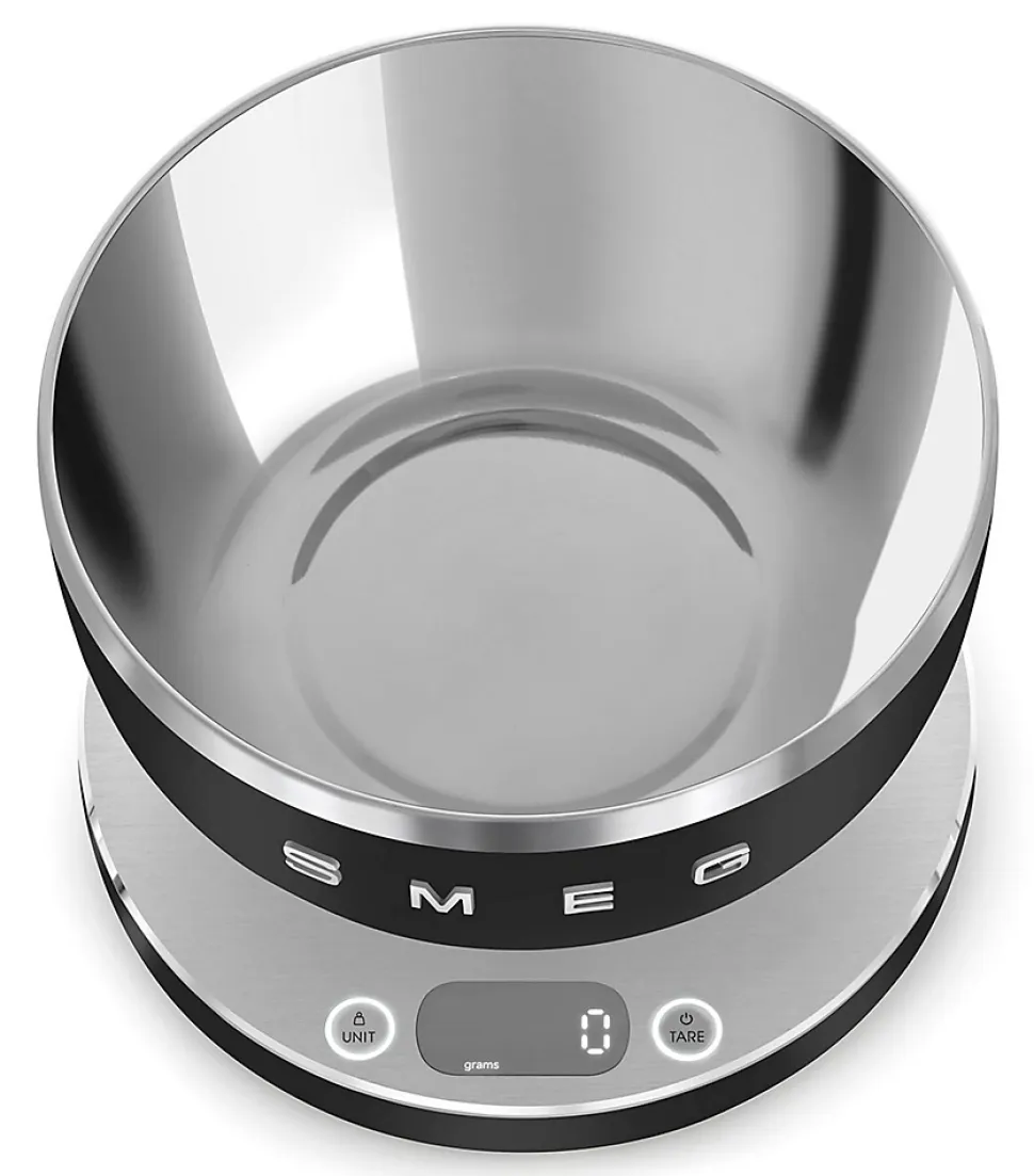 Balance de cuisine électronique 5kg Smeg – Balance de cuisine KSC01BLMWW de Smeg.Balance de cuisine design.La balance de cuisine numérique Smeg est l’accessoire idéal pour ceux qui apprécient la précision, le style et la commodité dans la cuisine. Son design léger et raffiné, avec un panneau en aluminium brossé et une surface de couleur mate, en fait un véritable objet de design. La cuve amovible en acier inox ajoute non seulement une touche d’élégance à la balance, mais permet également de la nettoyer et de l’entretenir facilement, car elle passe au lave-vaisselle, est hygiénique et résiste aux odeurs. L’écran LED et les touches en aluminium complètent son look moderne et sophistiqué, rehaussant la chaleur et la tendance de n’importe quelle cuisine.Batterie rechargeable.Grâce à sa batterie lithium-ion rechargeable, la balance numérique Smeg est une excellente solution pour ceux qui recherchent la commodité et la fiabilité. Le??????? câble de chargement USB élimine la nécessité de remplacer fréquemment la batterie, tandis que le mode veille automatique réduit la consommation d’énergie en éteignant la balance lorsqu’elle n’est pas utilisée. Cette fonction permet non seulement de prolonger la durée de vie de la batterie, mais aussi de promouvoir une approche plus dans la cuisine. – Type de produit : Balance de cuisine.Type : Electronique.Pesée maximale (en kg) : 5.Graduation : 1,00 g.Capacité du bol (L) : 1.8.Autonomie : 24 heures.Touche(s) sensitive(s) : Oui.Matière plateau : Aluminium.Matériau de la base : Plastique.Finition : Mat.Ecran : Oui.Type d’écran : LED.Touches tactiles : Non.Design extra plat : Non.Suspension murale : Non.Conversion des liquides : Oui.Bluetooth : Non.Arrêt automatique : Non.Type de commandes : Manette et Touches.Tare automatique : Oui.Mise en marche/Arrêt : Manuel ou automatique.Arrêt automatique :