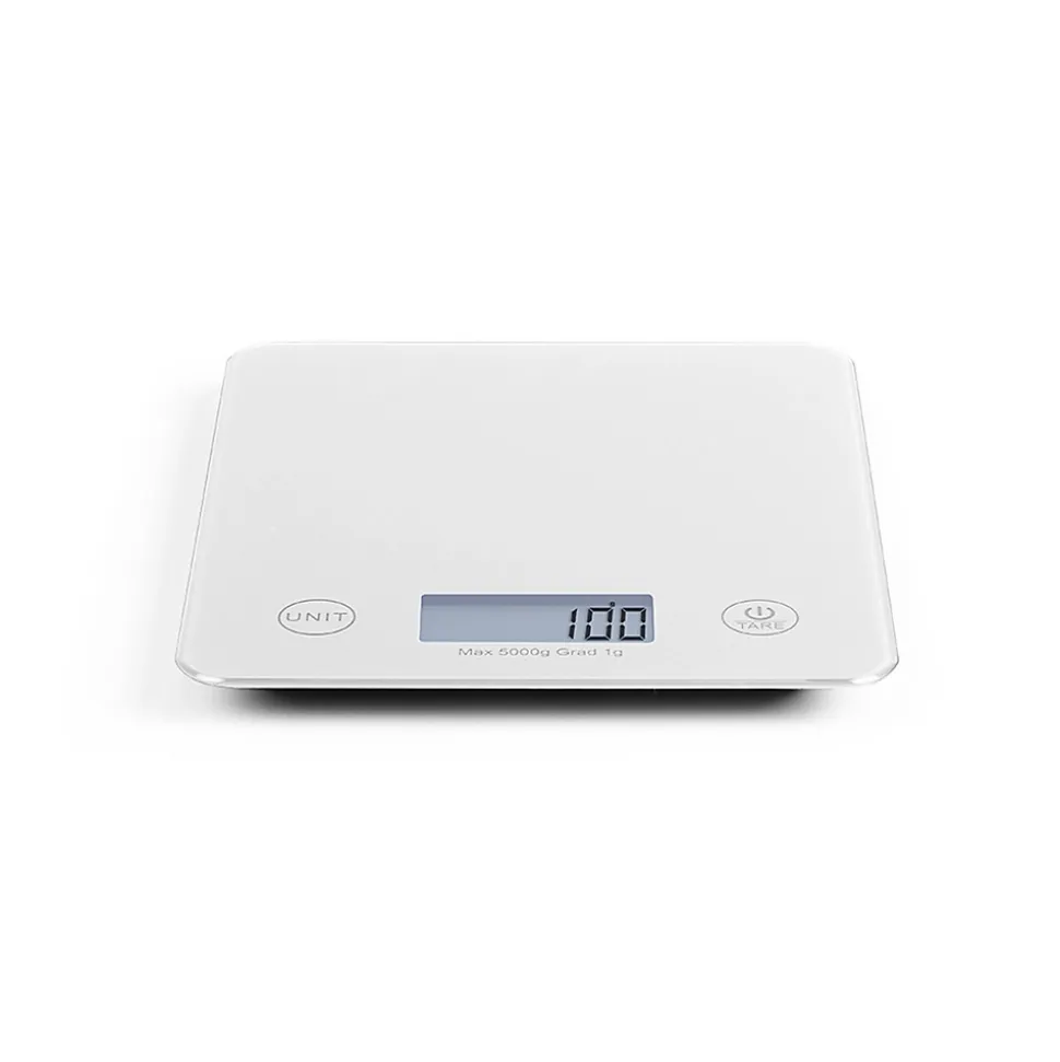 Balance de cuisine électronique blanche – Capacité 5 kg – ml ou g :Avantages principaux :- Touches sensitives- Ultra slim- Ecran LCD- Fonction Tare- Choix de l’unité de mesure- Capacité 5 kg- Précision au gramme près- Arrêt automatique- Piles inclusesFonctions :- Unité de mesure française et anglo-saxonne- Choix de l’unité de mesure en grammes ou en millilitresCaractéristiques techniques : – Dimensions 21,8 x 18,8 x 1,8 cm- Piles oui :0% mercury-0% low cadmium- Type de pile R3 ou AAA- Nb de piles 3- Matière Verre…
