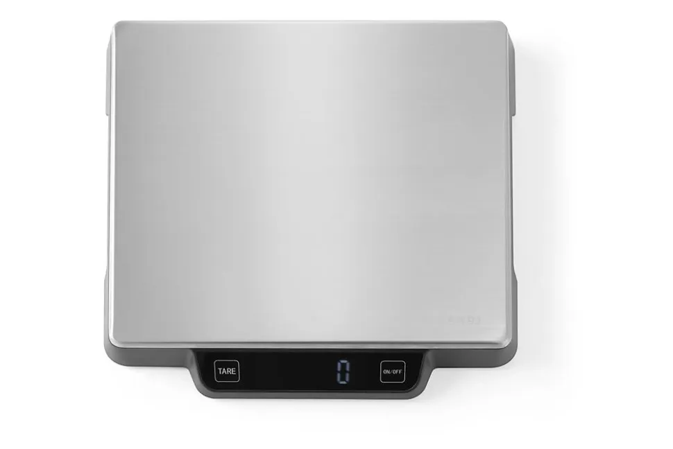 Balance de cuisine Balance de cuisine Peut peser jusqu’à 15.000 g avec une précision de 1g et avec un poids minimum 2g. Surface en inox sans soudure, structure faite en plastique HIP5 avec un écran numérique intégré. Le capteur de poids de haute précision permet une mesure précise. La lecture se fait en gramme. Ecran tactile : marche / arrêt et tare. Avec tare automatique, information de surcharge et batterie faible. Arrêt automatique, fonctionne avec 3 piles AAA (non comprises) l18- L0.1- P16.5- h3.1- ABS