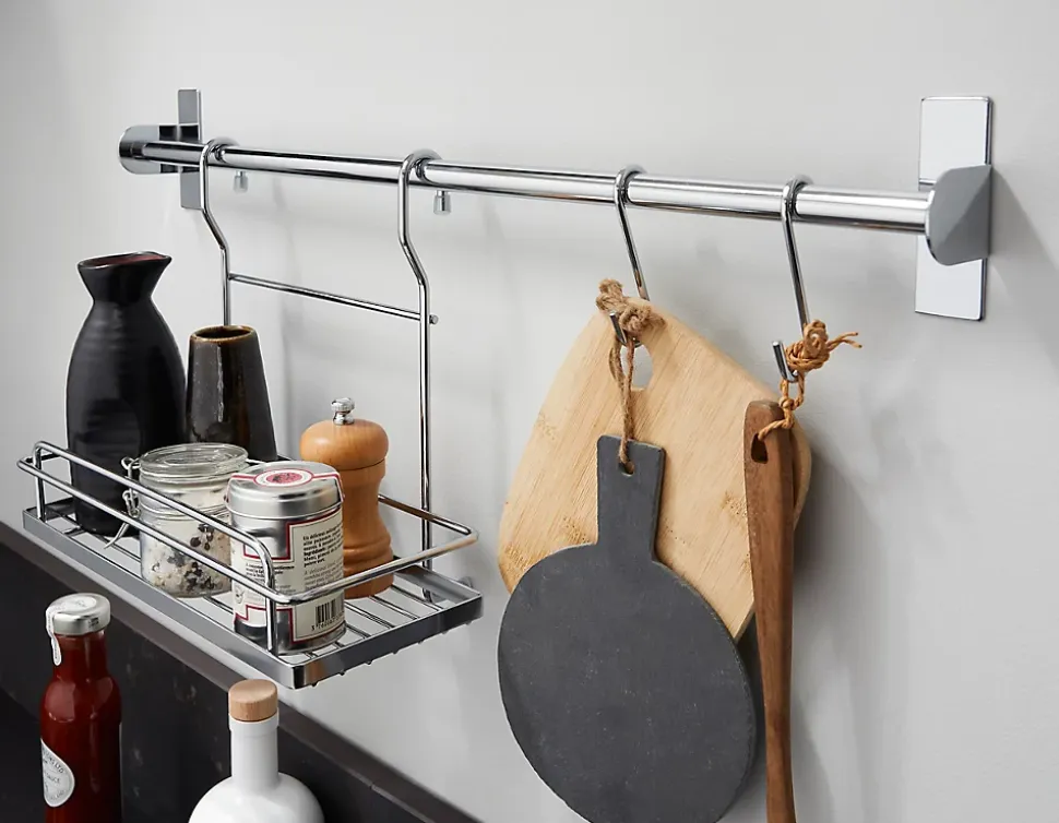 Nous avons conçu ce rail d’organisateur à suspendre pour vous donner un coup de main lorsque l’espace dans votre cuisine est limité. Il trouve parfaitement sa place entre votre plan de travail de cuisine et vos meubles hauts, et les fixations sont incluses afin que vous ayez tout ce dont vous avez besoin.