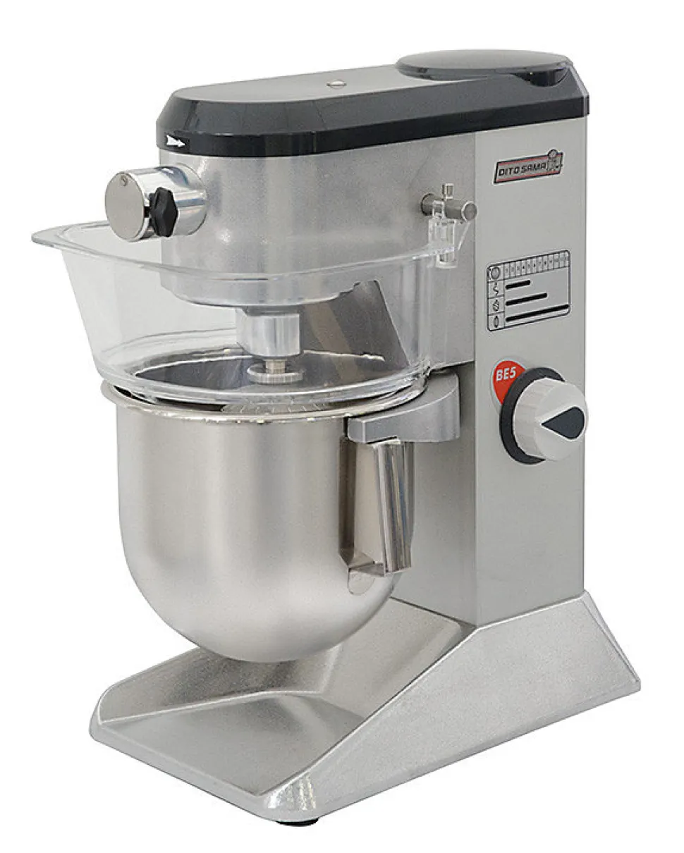 Batteur mélangeur professionnel BE5 avec prise d’accessoires Ce batteur mélangeur professionnel compact est conçu pour répondre aux besoins des professionnels de la cuisine, mais aussi des passionnés de pâtisserie. Sa puissance et sa polyvalence en font un outil indispensable pour réaliser toutes vos préparations.Pourquoi choisir le batteur mélangeur professionnel BE5 de Dito Sama ?Polyvalence : Mélangez, pétrissez et fouettez une large variété d’ingrédients avec une précision inégalée.Robustesse : Fabriqué avec des matériaux de qualité, notamment une cuve en inox AISI 304, il est conçu pour durer.Sécurité : L’écran de protection transparent et le mécanisme planétaire auto-lubrifié garantissent une utilisation en toute sécurité.Facilité d’utilisation : Le variateur de vitesse électronique et le bouton de sélection ergonomique vous offrent un contrôle total.Hygiène : Tous les éléments en contact avec les aliments sont facilement démontables et lavables au lave-vaisselle.Caractéristiques techniques clés :Puissance : 0,45 kW pour des résultats rapides et efficaces.Capacité : 5 litres, idéal pour des préparations de taille moyenne.Vitesse variable : Adaptez la vitesse en fonction de votre préparation pour un résultat parfait.Dimensions compactes : Facile à ranger et à déplacer.Robustesse : Châssis solide et matériaux de qualité.Ses avantages :Cuve en inox : Résistante à la corrosion et facile à nettoyer.Moteur puissant : Pétrit les pâtes les plus lourdes sans effort.Sécurité optimale : Écran de protection et mécanisme sécurisé.Nettoyage facile : Tous les éléments se démontent pour un nettoyage rapide.Design compact : S’intègre facilement dans toutes les cuisines.Compris avec :Cuve inox 5 litresCrochet, palette et fouet en inoxPrise d’accessoiresAvec ce <a href= »https://www.materiel-chr-pro.com/preparation/pre