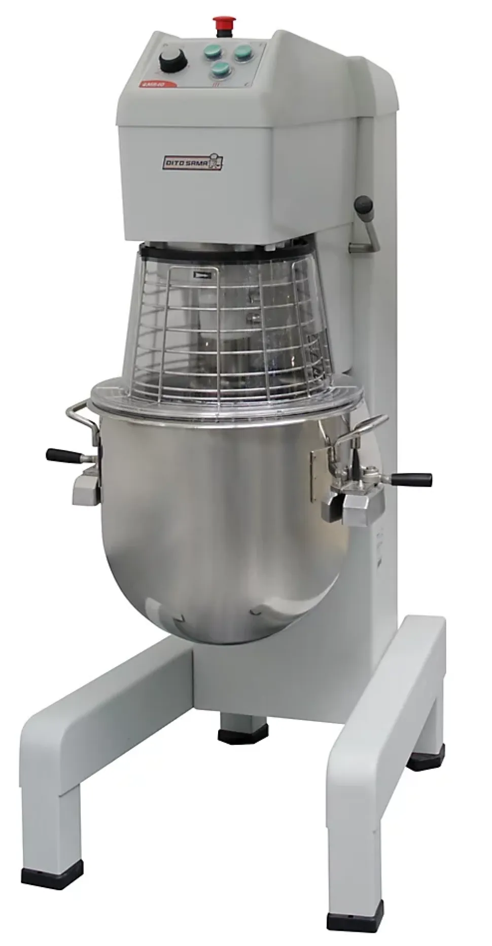 Batteur mélangeur de sol professionnel Vitesse de pétrissage : > avec crochet.Vitesse de mélange : > avec palette.Vitesse d’émulsion : > avec fouet.Châssis et piètement en inox.Châssis renforcé, pieds et transmission conçus pour des travaux intensifs.La montée et l’abaissement de la cuve sont contrôlés par un levier avec blocage automatique de la cuve en position relevée.Capacité maximum (détrempe farine avec 60 % d’hydratation) 12 kg.Panneau de commande étanche à boutons tactiles avec minuterie, réglage et affichage de la vitesseL’écran plein de sécurité et l’écran fil inox, sont amovibles et se démontent sans outils pour faciliter le lavage au lave-vaisselle.Batteur mélangeur professionnel adapté aux exigences rigoureuses de la boulangerie et de la pâtisserie.3 vitesses pré-programmées modifiables : 40, 80 et 160 tr/min.Goulotte amovible disponible en standard pour ajouter des ingrédients tout en travaillantMécanisme planétaire protégé contre les projections d’eau (contrôles électriques IP55 et machine IP23).Pieds réglables pour une bonne stabilité.Caractéristiques techniques :Largeur extérieure : 655 mmProfondeur extérieure : 850 mmHauteur extérieure : 1370 mmPoids brut (Kg) : 195Tension : 200-240 V/1N ph/50/60 HzPuissance : 2,2 kWCuve en inox AISI 302 d’une capacité de 40 litres.Variateur de vitesse électronique (10 vitesses de 30 à 175 tr/min)Rendement : 10 – kg/CycleDétrempe : 10 kg avec crochet spiralBlanc d’œuf : 70 avec FouetLivré avec :Crochet spiral, palette, fouet renforcé et cuve inox 40 litres