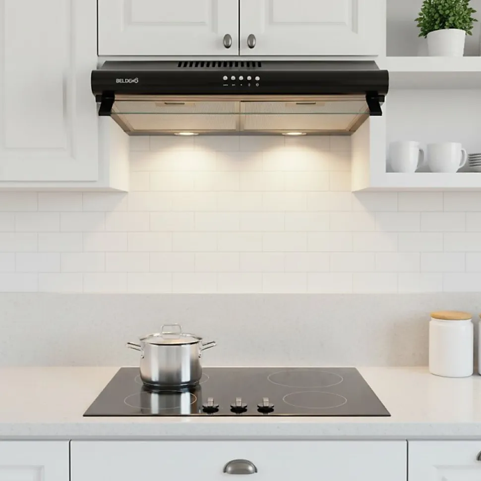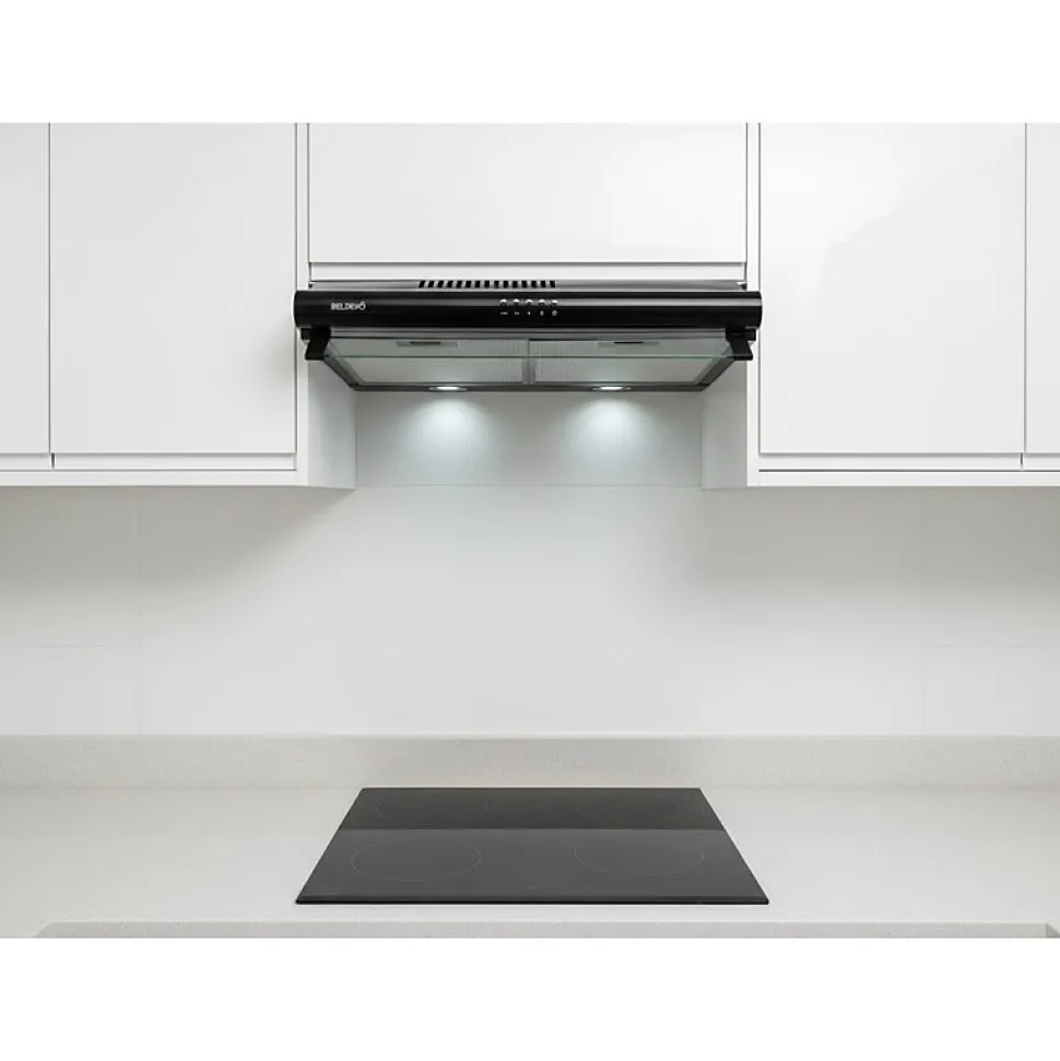 Hotte casquette GRETA 60 BK – Marque BELDEKO – Coloris noir – Matière : acier peint et verre