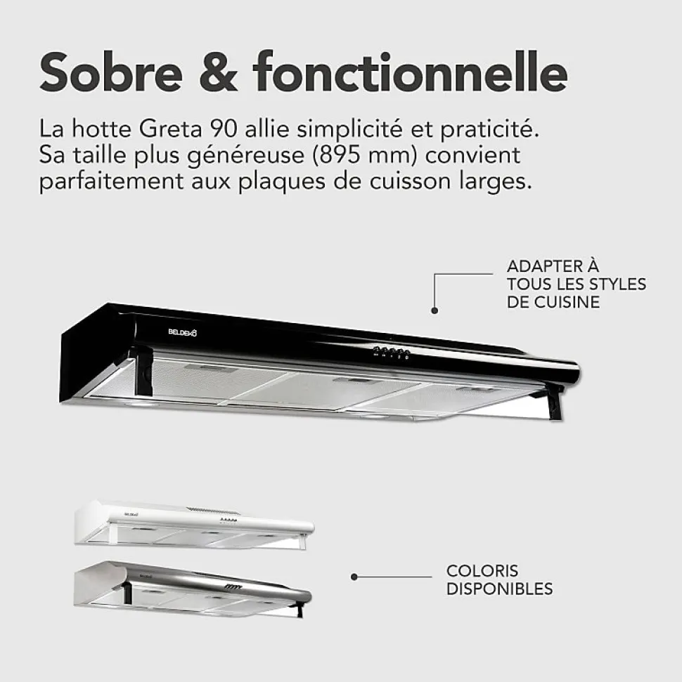 Hotte casquette GRETA 90 BK – Marque BELDEKO – Coloris blanc – Matière : Acier peint et verre