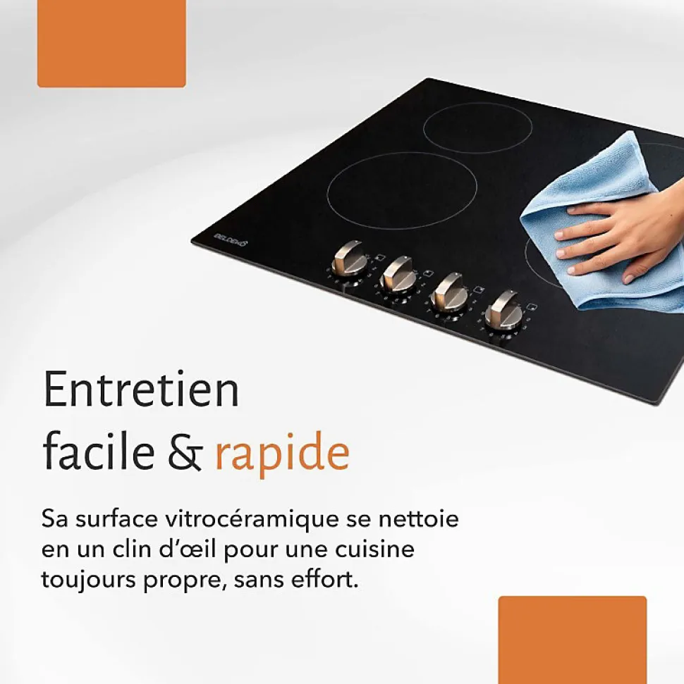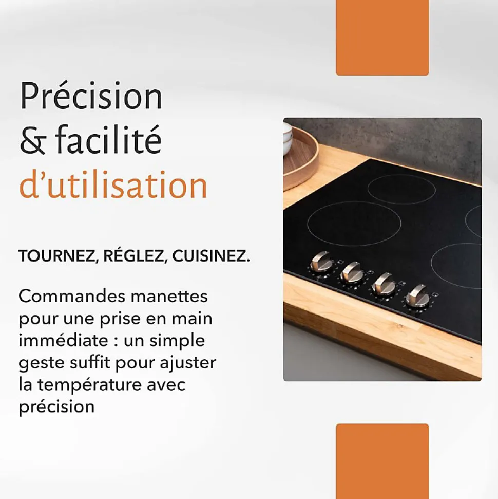 Table de cuisson vitrocéramique 4 foyers avec manettes à 11 positions