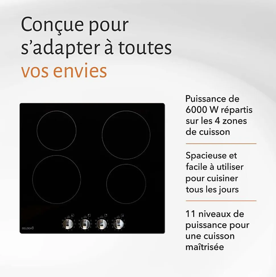 Plaque de cuisson 4 foyers VITROCÉRAMIQUE – TV4V-154 – Marque BELDEKO