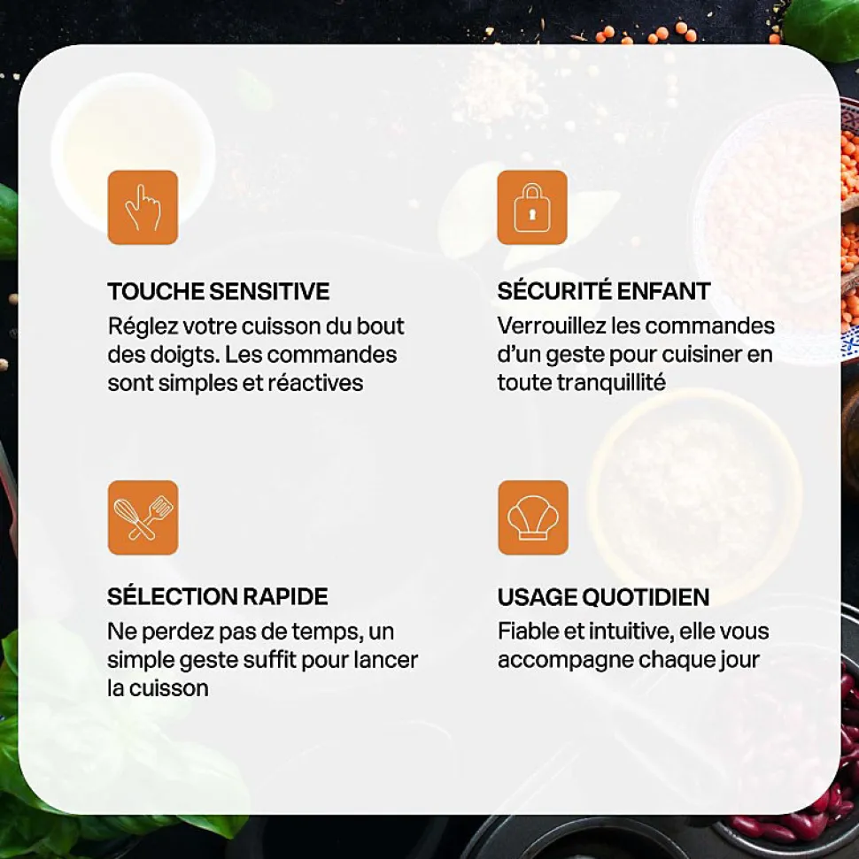- Puissance : 2000 Watts – Type de foyer : Induction