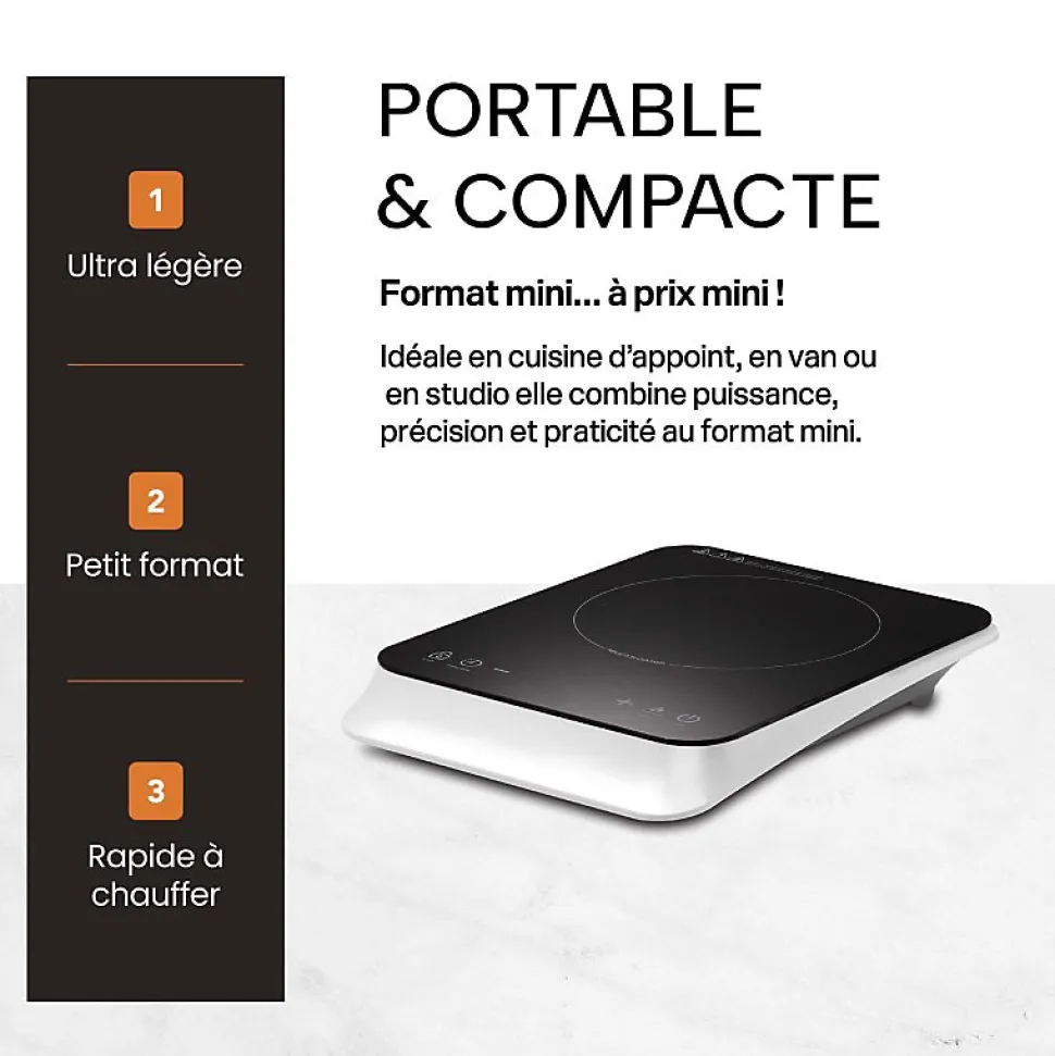 - Table de cuisson INDUCTION posable design et compacte. Cette plaque de cuisson trouvera sa place aisément dans votre cuisine… mais également dans votre cuisine d’extérieur, camping-car ou van-aménagé !