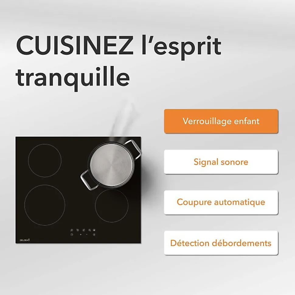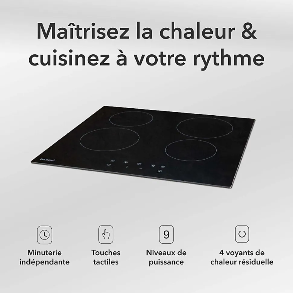 - Les plus : Voyants de chaleur résiduelle / Sécurité coupe circuit 60 minutes / Minuteur simultané sur chaque zone / Verrouillage enfant