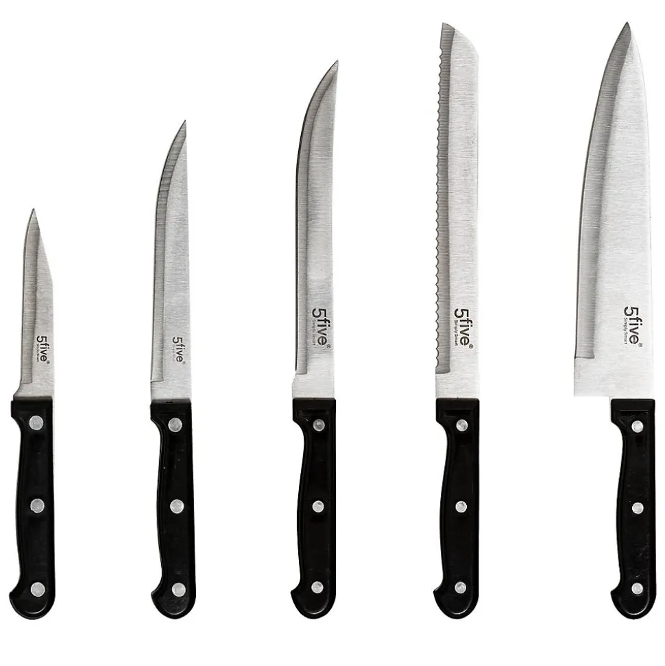 - Contient : 1 aiguiseur, 1 paire de ciseau, 6 x Couteaux à Steak, 1 x Couteau chef, 1 x Couteau à pain, 1 x Couteau à trancher, 1x Couteau utilitaire, 1 x Couteau d’office.