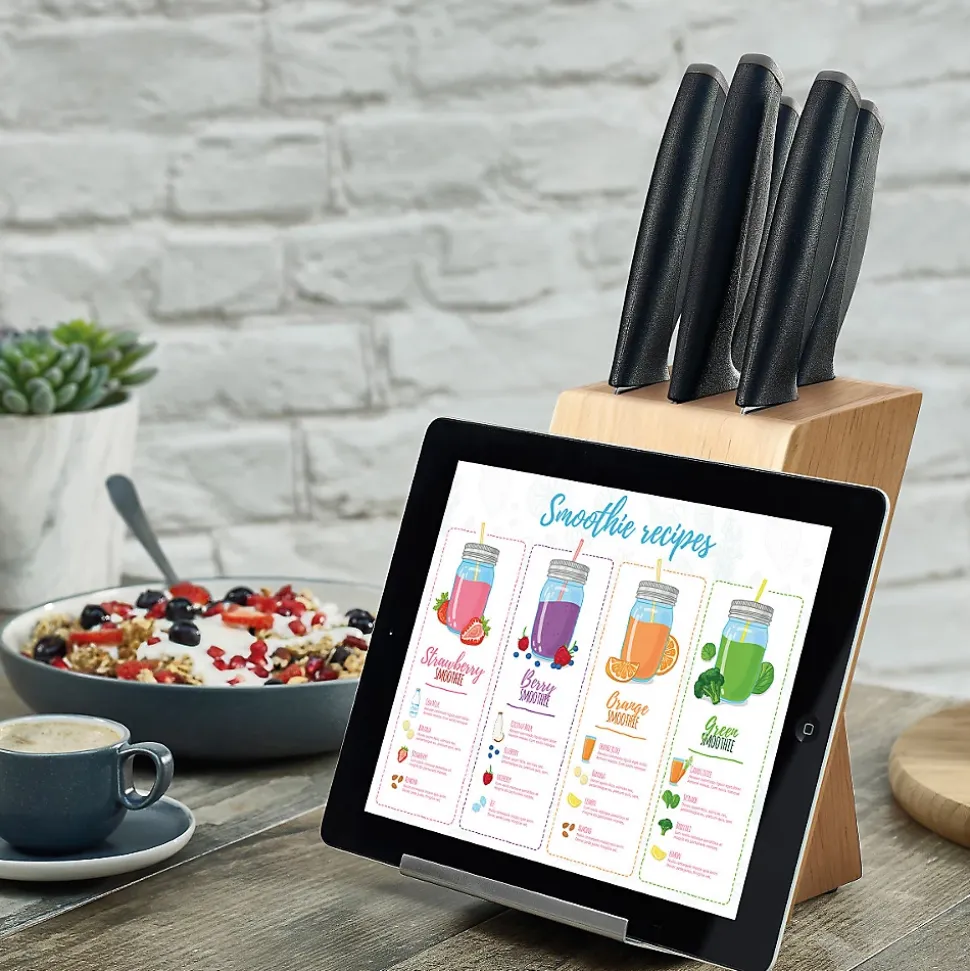 - Bloc de 5 couteaux de cuisine office, utile, chef, découper et pain. Acier inoxydable 13/0 et finition satinée. Astucieux, le bloc sert de support à votre iPad ou à un livre de recettes.