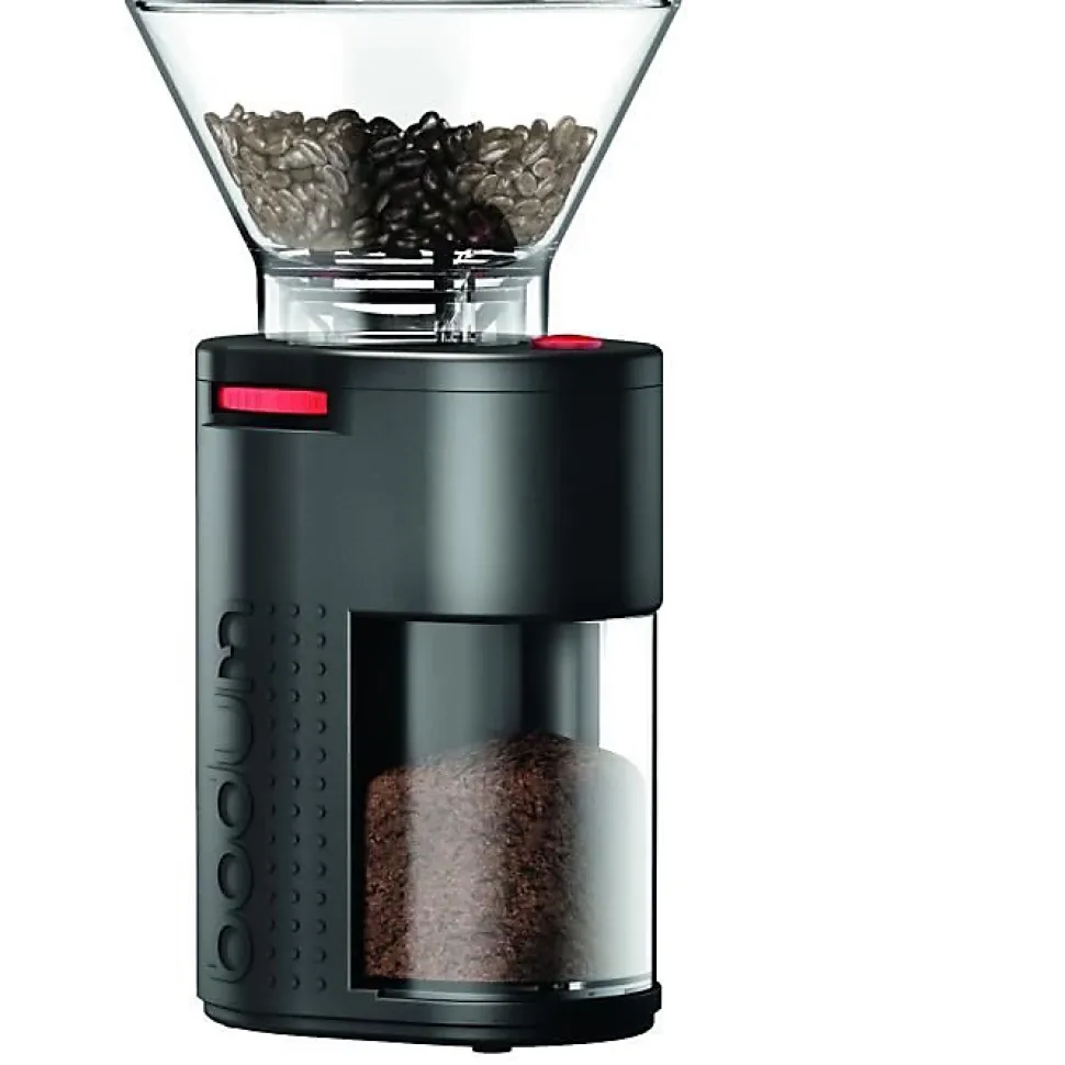 Le broyeur à café électrique BISTRO de BODUM offre une mouture homogène grâce à sa meule en acier inoxydable et un moteur de 160 W. Parfait pour toutes les méthodes, il combine design compact, facilité d’entretien et sécurité conforme aux normes GS, CE et ETL.