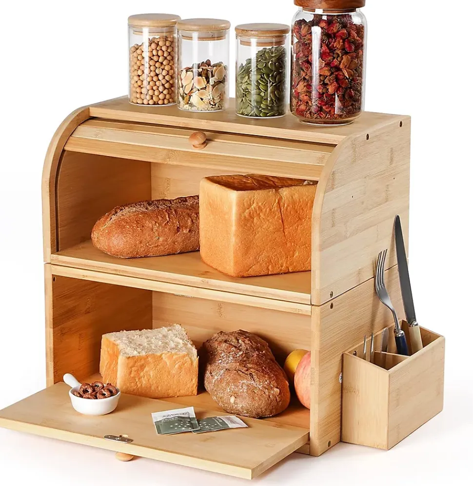 【Grande capacité】Cette boîte à pain est suffisamment spacieuse (taille : 38 cm x 25 cm x 36 cm) pour la plupart des usages personnels et familiaux. L’espace de stockage indépendant peut garder le pain propre et l’empêcher d’être pressé et déformé. Il a également un dessus plat et des paniers latéraux pour répondre aux besoins de stockage supplémentaires.【Matériau de qualité alimentaire】Nos boîtes à pain sont fabriquées à partir de bambou naturel, qui peut absorber l’humidité sans conduire la chaleur, maintenant ainsi la bonne température à l’intérieur. Ainsi, elle peut préserver la texture du pain. Traitées avec de l’huile de cire de bois de qualité alimentaire, nos boîtes à pain sont non toxiques et sans odeur, garantissant votre santé et celle de votre famille.【Conception conviviale】La partie supérieure de la boîte à pain est spécialement conçue avec une porte à enroulement peu encombrante. La partie inférieure est conçue avec une porte magnétique très facile à ouvrir et à fermer. Les évents sur les planches de bambou permettent d’évacuer l’excès d’humidité et de maintenir une humidité adéquate, conservant ainsi votre pain frais plus longtemps.【Structure empilable】Avec une conception empilable à deux couches, notre boîte à pain vous aide à tirer le meilleur parti de l’espace de la cuisine ! Les deux parties peuvent être utilisées séparément ou reliées ensemble par quatre points magnétiques, ce qui la rend plus stable.
