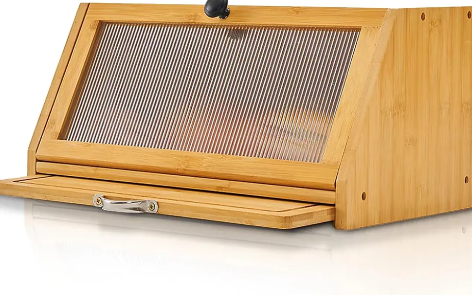 Boîte à pain en bambou de qualité supérieure : la boîte à pain en bois est fabriquée en bambou de qualité supérieure et peut non seulement être utilisée pour stocker du pain, mais aussi pour stocker des épices telles que le sel, le poivre, le beurre, la confiture, etc. Une boîte à pain garde le plan de cuisine bien rangé et permet d’économiser de l’espace sur le plan de travail. Le bambou de qualité supérieure est robuste et durable, facile à nettoyer et empêche la formation de moisissures.Équipée d’une planche à découper : la planche à découper est en bambou de qualité supérieure d’une épaisseur d’environ 1,2 cm, facile à nettoyer et empêche efficacement la formation de moisissures ; même les boîtes à pain à une couche sont livrées avec des planches à découper pour couper facilement le pain ; une boîte à pain économique avec fonctions de rangement et de planche à découper.Panneau de porte ondulé d’eau de qualité supérieure : la boîte à pain est équipée d’un beau panneau ondulé d’eau qui protège non seulement la propreté du contenu contre les infestations d’insectes, mais protège également la vie privée. Par exemple, la boîte à pain peut être utilisée comme boîte de rangement pour médicaments, et la plaque ondulée est belle tout en offrant une protection des données.Fermeture de porte magnétique sûre : notre boîte à pain en bambou est équipée d’aimants puissants qui garantissent une fermeture fiable et sûre de la porte. Ainsi, le contenu reste protégé et frais sans que la porte ne soit accidentellement ouverte.