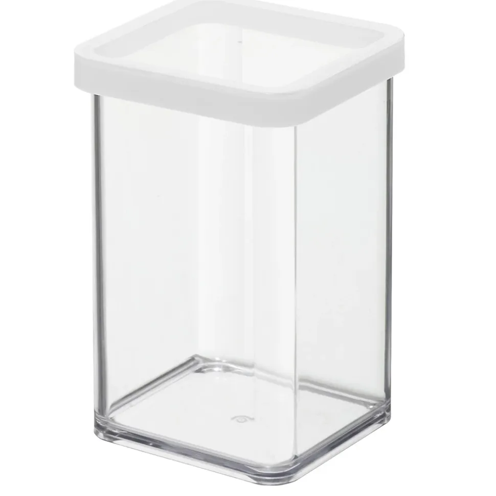 Boite de conservation carrée 1 L. Conserve parfaitement la saveur des aliments. Passe au lave vaisselle. Look très esthétique. Tous les modèles sont combinables pour optimiser l’espace dans vos placards. Superposable.