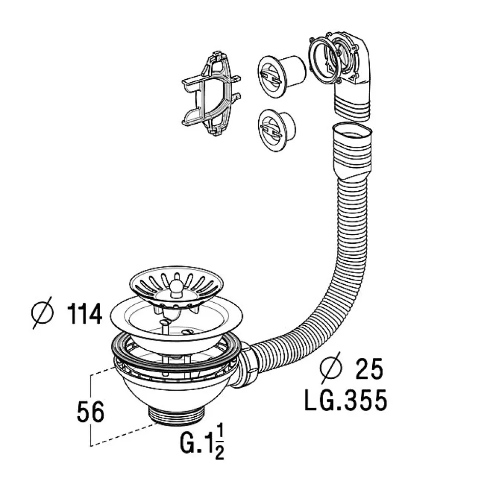 Pour évier grès ou en matériau composite Grille et plateau finition inox Perçage : Ø 90 mm Plateau : Ø 114 mm