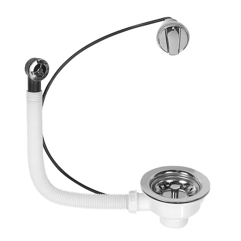 Bonde à panier pour évier 90mm avec trop-plein et commande à câble Wirquin