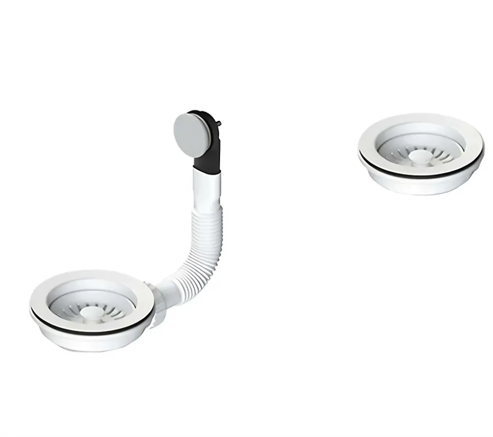 Bonde ronde double pour évier 2 cuves diamètre 90 mm