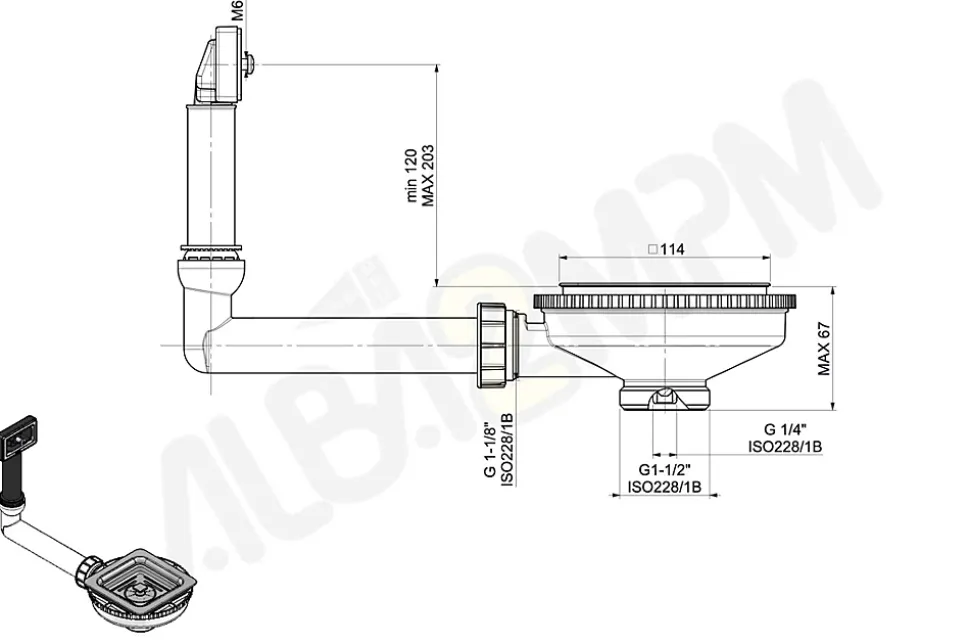 Bonde carrée simple pour évier 1 cuve diamètre 90 mm