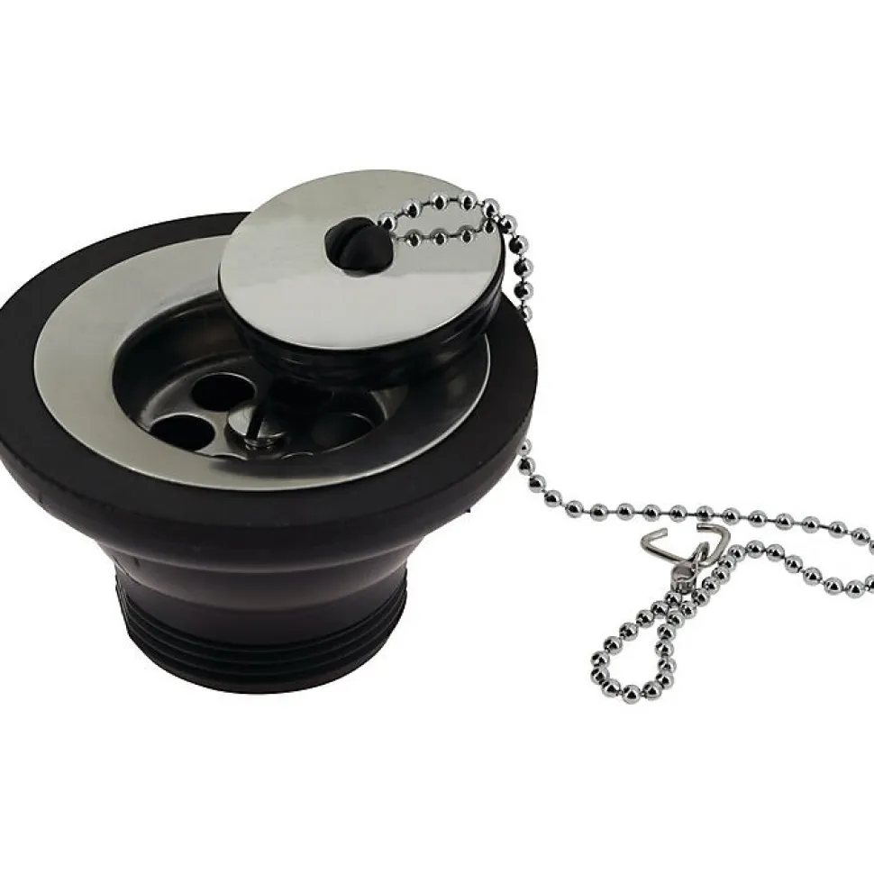 Longueur chaînette (280 mm)Bonde d’évier à bouchon chaînette, intégrant 25 % de matières recycléesRaccordements : 40 mm – 1 » 1/2Bonde pour évier inox de perçage Ø 50 mm,Longueur de la vis M6 : 30 mm