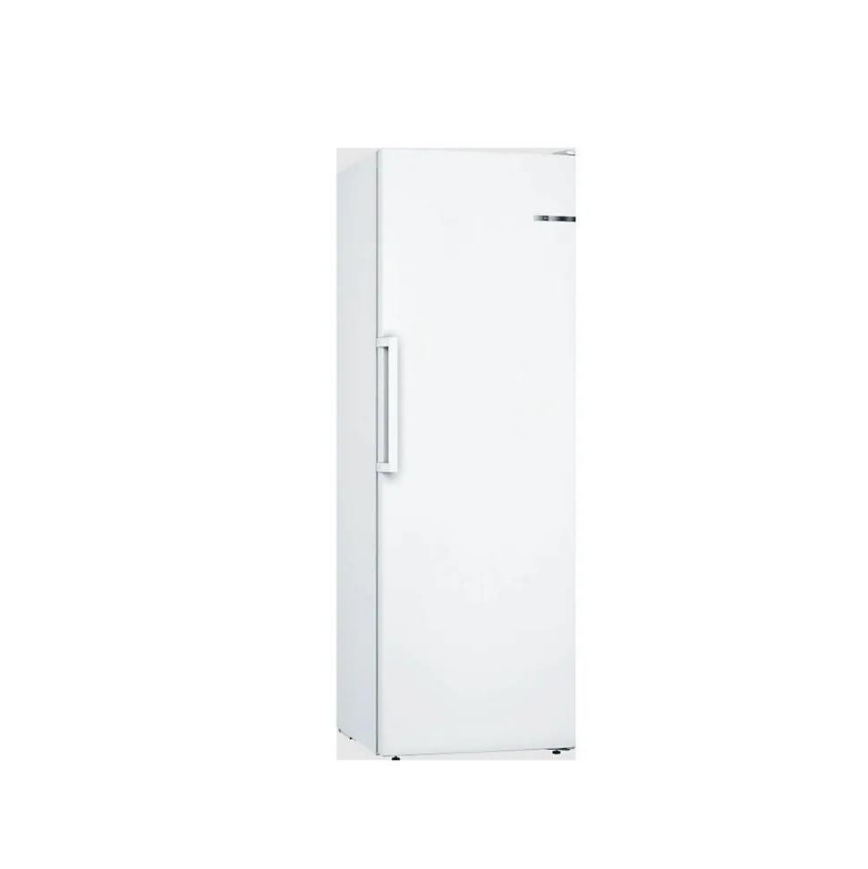 Congélateur armoire Bosch GSN33FWEV – Ce modèle pose-libre de la série 4 vous propose un volume utile de 225 L pour répondre aux besoins de stockage de toute la famille – Grâce à la technologie NoFrost, finis les dégivrages fastidieux – Le froid ventilé associé au système Multi Airflow assure une température homogène et rapide dans l’ensemble de la cavité – Avec la fonction Super-congélation automatique, les aliments récemment ajoutés sont rapidement surgelés sans affecter ceux déjà stockés – Les capteurs FreshSense garantissent une température constante pour une conservation optimale – Ce congélateur offre une grande modularité grâce au système VarioZone avec clayettes amovibles et 5 tiroirs transparents dont un grand tiroir BigBox pour les pièces encombrantes – La régulation électronique avec affichage LED permet un réglage simple et précis – En cas de hausse de température ou de porte mal fermée, une alarme visuelle et sonore vous alerte – L’autonomie est de 9 heures en cas de coupure et le pouvoir de congélation atteint 19 kg en 24h – Ce modèle blanc, doté de poignées verticales et d’une ouverture sans débord à 90°, mesure 176 x 60 x 65 cm – Livré avec deux accumulateurs de froid et un bac à glaçons. Caractéristiques Volume (total) 225 L Type de froid No-Frost Pouvoir de congélation 19 Kg/24H Autonomie 9 heures Niveau sonore 39 dB Conso élec. 229 kWh / an Labels et points clés Label énergie E Catégorie sonore C Le + produit No-Frost MultiAirflow Disponibilité des pièces détachées 11 ans (donnée constructeur) Régulation électronique Affichage T° oui Alarme oui Connecté non Classe climatique SN-T Porte(s) réversible(s) oui Coloris blanc Dimensions (LxHxP) 60 x 176 x 65 cm Poids net 62,7 Kg Lieu de fabrication Pologne