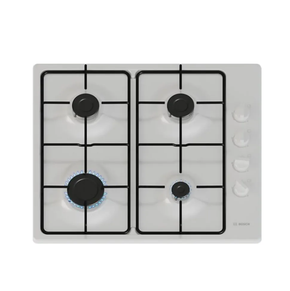 Table gaz Bosch PBP6B2K80 Série 2 60 cm – 4 foyers dont un puissant brûleur rapide de 3 kW pour une cuisson efficace – Commandes latérales avec boutons ergonomiques offrant une bonne prise en main – Allumage électrique intégré pour un allumage facile et sécurisé – Sécurité thermocouple qui coupe automatiquement l’arrivée de gaz en cas d’extinction de la flamme – Surface en émail blanc, à la fois élégante et facile à nettoyer – Grilles émaillées robustes pour une stabilité parfaite de vos casseroles et poêles – Compatible gaz naturel et butane/propane (injecteurs fournis) – Installation encastrable dans une niche standard – Compacte et performante, cette table gaz est idéale pour une cuisine pratique au quotidien. Caractéristiques Matière émail Brûleur gaz 4 Foyer(s) droit AV -/1 _ AR -/1,75 cm/kW Foyer(s) gauche AV -/3 _ AR -/1,75 cm/kW Labels et points clés Le + produit Allumage électrique intégré Disponibilité des pièces détachées 11 ans (donnée constructeur) Bandeau latéral Commandes manettes Coloris table blanc Grilles émaillées Injecteurs équipée pour le gaz naturel – Livrée avec injecteurs butane/propane Dimensions Hors tout (LxHxP) 58 x 5,18 x 51 cm Dimensions Encastrement (LxHxP) 56 x 4,5 x 48 cm Poids net 6,8 Kg Alimentation 220-240 V / 50-60 Hz / 3 A Cordon électrique fourni (100 cm) sans fiche Connecté non Lieu de fabrication Espagne
