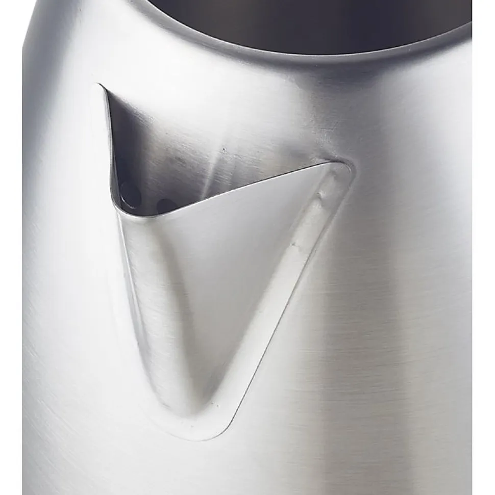 Manipulation simple grâce à un design sans câble – facile à verserBouilloire électrique en Inox brossé et base et poignée noirRésistance à fond platSur base sans fil socle 360 degrésPuissance 1500 watts avec interrupteur marche arrêtCapacité 1,8 litres avec niveau extérieur de remplissageArrêt automatique à l’ébullitionCouvercle avec sécuritéVoyant de mise sous tensionFiltre pour les petites particulesLivrée avec son cordonPratique, chauffe rapidement et s’arrête automatiquement à l’ébullitionTension nominale 220-240 V