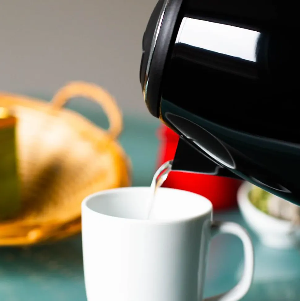 Bouilloire électrique en inox brosséBase et poignée : noirRésistance à fond platSur base sans fil avec socle 360 degrésMatériau : acier inoxydable et plastiquePuissance : 1500 WInterrupteur marche arrêtCapacité : 1,8 lArrêt automatique à l’ébullitionCouvercle avec sécuritéVoyant de mise sous tensionFiltre pour les petites particulesLivrée avec son cordonTension nominale : 220 – 240 VDimensions : 20 x 23 x 17 cmConçu pour chauffer rapidement et donc être pratique
