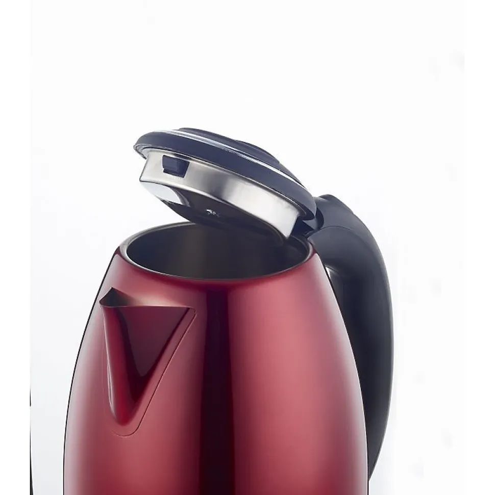 Manipulation simple grâce à un design sans câble – facile à verserBouilloire électrique en Inox brossé et base et poignée noirRésistance à fond platSur base sans fil socle 360 degrésPuissance 1500 watts avec interrupteur marche arrêtCapacité 1,8 litres avec niveau extérieur de remplissageArrêt automatique à l’ébullitionCouvercle avec sécuritéVoyant de mise sous tensionFiltre pour les petites particulesLivrée avec son cordonPratique, chauffe rapidement et s’arrête automatiquement à l’ébullitionTension nominale 220-240 V