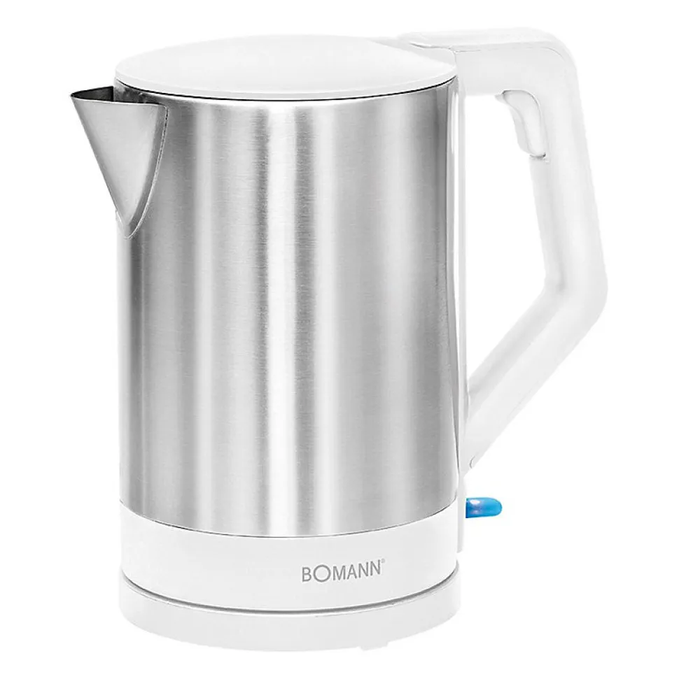 BOUILLOIRE ELECTRIQUE 1,5L 2200WCapacité max. 1,5 litreBoîtier en acier inoxydableCouvercle à charnière de sécurité Manipulation simple grâce à la technologie sans câble facile à verser Connecteur 360°Interrupteur marche/arrêt (bleu allumé)Élément chauffant en acier inoxydable dissimuléMise hors tension automatique/manuelleIndicateur de niveau d?eauStation de base avec rangement pour cordonProtection contre l?évaporation et la surchauffe220?240 V, 50 Hz, 1850?2200 W