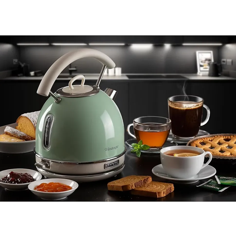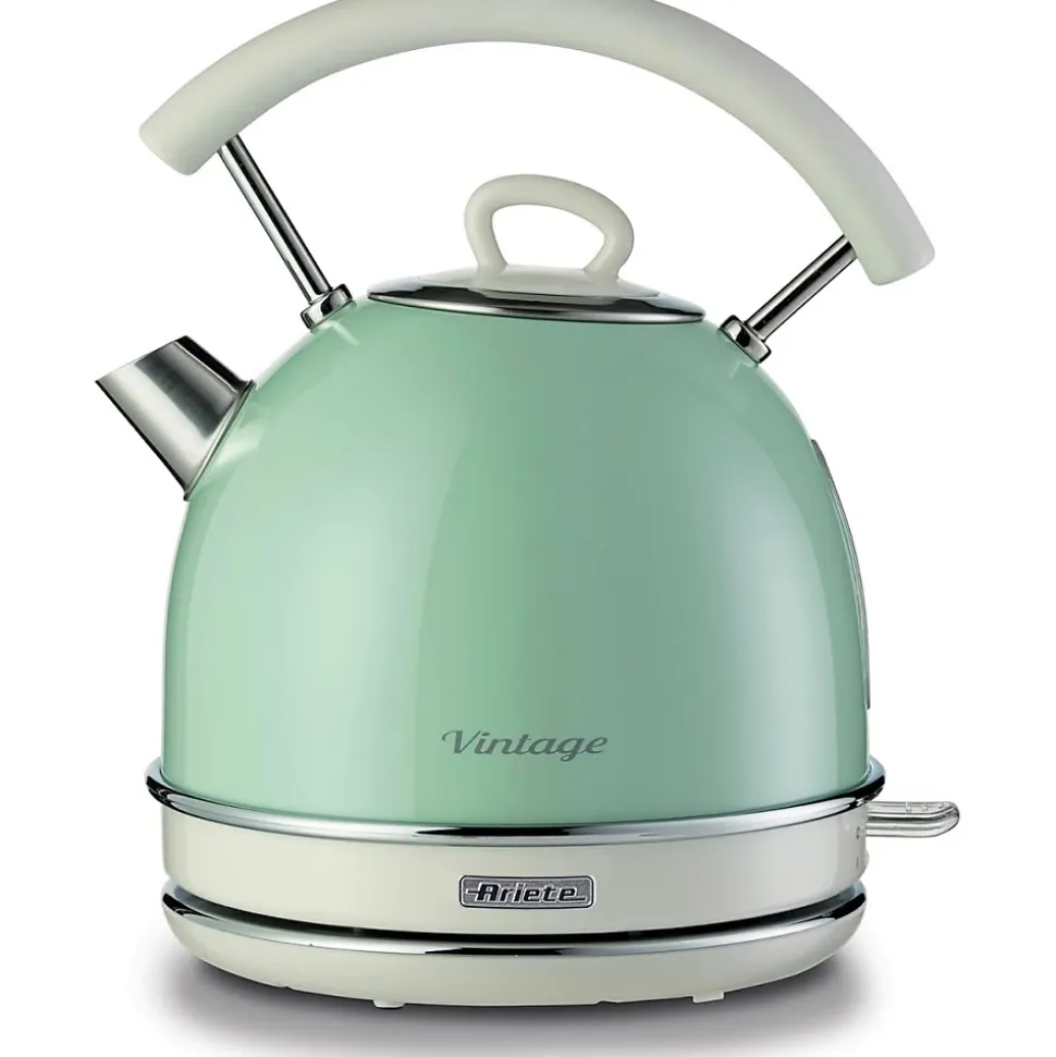 Bouilloire Électrique Vintage 1,7 Litres – Vert – Modèle 2877Le Bouilloire Électrique Vintage d’Ariete allie design rétro et performance moderne. Doté d’une capacité de 1,7 litres, d’un système d’arrêt automatique pour une sécurité renforcée et d’une poignée soft touch, il permet de chauffer rapidement de l’eau pour le thé, tisane ou tout autre usage. Idéal pour les amateurs de style vintage et de moments de détente.Caractéristiques Principales :Capacité : 1,7 litresPuissance : 2000WDesign rétro : couleurs pastel et lignes élégantesBase sans fil rotative à 360°Filtre amovible pour tisanesSystème d’arrêt automatique pour une sécurité optimaleAvantages Produit :Vous recherchez un produit qui allie style et efficacité ? Cette bouilloire offre une chauffe rapide de l’eau pour vos moments de relaxation, tout en ajoutant une touche de charme à votre cuisine. La poignée ergonomique et les parois froides garantissent une utilisation en toute sécurité.Dimensions & Poids :Dimensions : 23 x 20 x 28 cmPoids net : 1,35 kgPrêt à apporter une touche vintage à votre cuisine tout en facilitant vos préparations quotidiennes ?