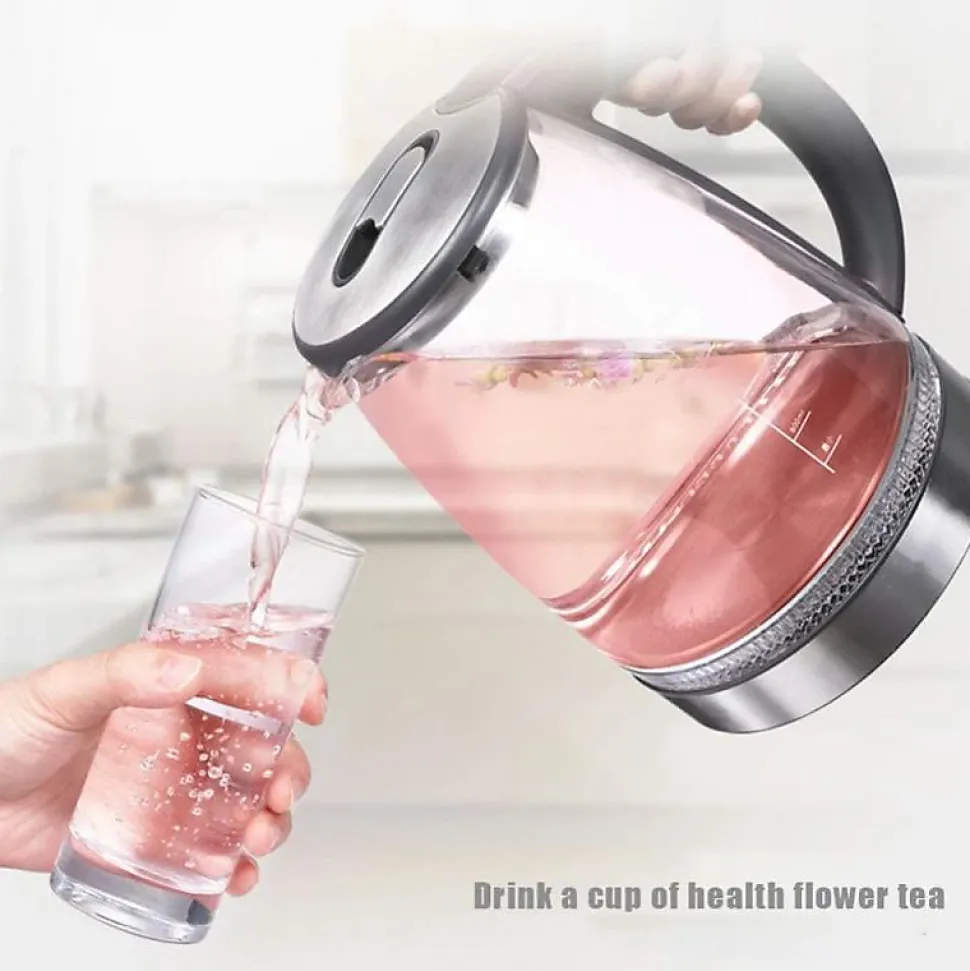 Bouilloire électrique en verre borosilicate – 1,7L, 2200W Cette bouilloire allie design moderne, performance et sécurité : – Puissance : 2200W Max, pour chauffer rapidement l’eau. – Tension : Compatible 220-240V~ 50/60Hz. – Capacité : Réservoir de 1,7L, idéal pour les besoins quotidiens. – Matériaux : Corps en verre borosilicate durable, avec une poignée en plastique PP ergonomique et résistante à la chaleur. – Base rotative à 360° : Pratique pour les droitiers et gauchers, avec câble d’alimentation sans fil. Systèmes de sécurité avancés : – Arrêt automatique après ébullition de l’eau. – Protection anti-séchage (absence d’eau). – Système de fusion en cas de surchauffe. Design et fonctionnalités supplémentaires : Le fond est équipé d’une lumière LED élégante pour une expérience visuelle agréable lors de l’utilisation. Cette bouilloire associe efficacité, style et sécurité pour répondre à vos besoins quotidiens avec élégance.
