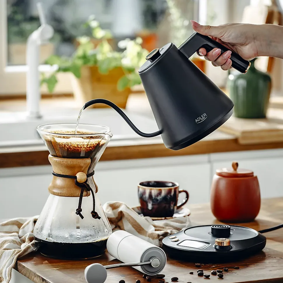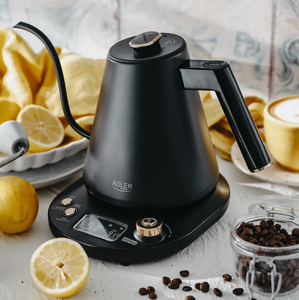 Découvrez un nouveau niveau de confort et de sophistication dans votre cuisine avec la bouilloire électrique Adler AD 1349. Cette élégante bouilloire d’une capacité de 1,0 litre offre une gamme de fonctionnalités innovantes qui satisferont les utilisateurs les plus exigeants. L’Adler AD 1349 n’est pas seulement une bouilloire électrique, c’est un outil de cuisine avancé alliant fonctionnalité et design élégant. Avec ses nombreux réglages de température et ses fonctionnalités innovantes, cette bouilloire répondra aux besoins de chaque utilisateur, alliant sécurité et confort.Caractéristiques principales :Contrôle de la température : Contrôle précis de la température pour faire bouillir de l’eau dans une plage de 40 °C à 100 °C (incréments de 5 °C), vous permettant de préparer diverses boissons en fonction de leurs exigences de température spécifiques.Capacité : La capacité maximale de 1,0 litre et minimale de 0,2 litre offre une utilisation flexible, des petites quantités d’eau aux grands volumes.Élément chauffant plat : Fabriqué en acier inoxydable de haute qualité, l’élément chauffant plat assure une ébullition rapide et efficace.Sécurité : La bouilloire est équipée d’une protection contre l’ébullition à sec, d’un arrêt automatique et d’un signal sonore au démarrage et après avoir fait bouillir l’eau.Affichage LED : Un écran LED moderne affiche la température actuelle de l’eau, vous donnant un contrôle total sur le processus d’ébullition.Maintien de la température : La fonction de maintien de la température vous permet de conserver la température sélectionnée jusqu’à 120 minutes, parfaite pour une utilisation prolongée.Indicateur de niveau d’eau : Un indicateur de niveau d’eau interne permet de surveiller facilement la quantité d’eau dans la bouilloire.Base rotative à 360° : La base rotative à 360 degrés et le rangement du cordon (longueur du cordon 75…