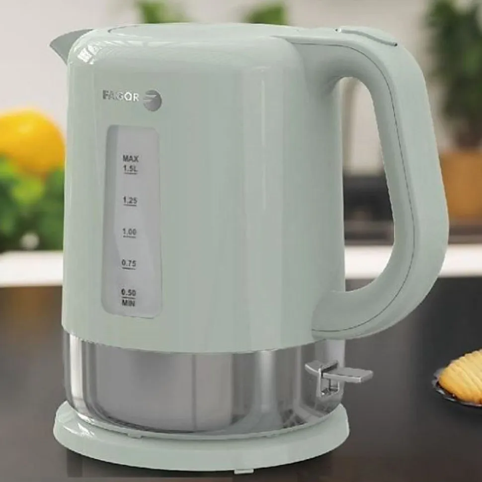 La bouilloire FAGOR FG5148 est dotée d’une puissance de 1850W – 2200W et d’une capacité de 1,5 L. Elle dispose d’un élément chauffant dissimulé et d’un indicateur de niveau d’eau externe. Pratique, elle offre un rangement du cordon et une sécurité contre la surchauffe avec arret automatique.