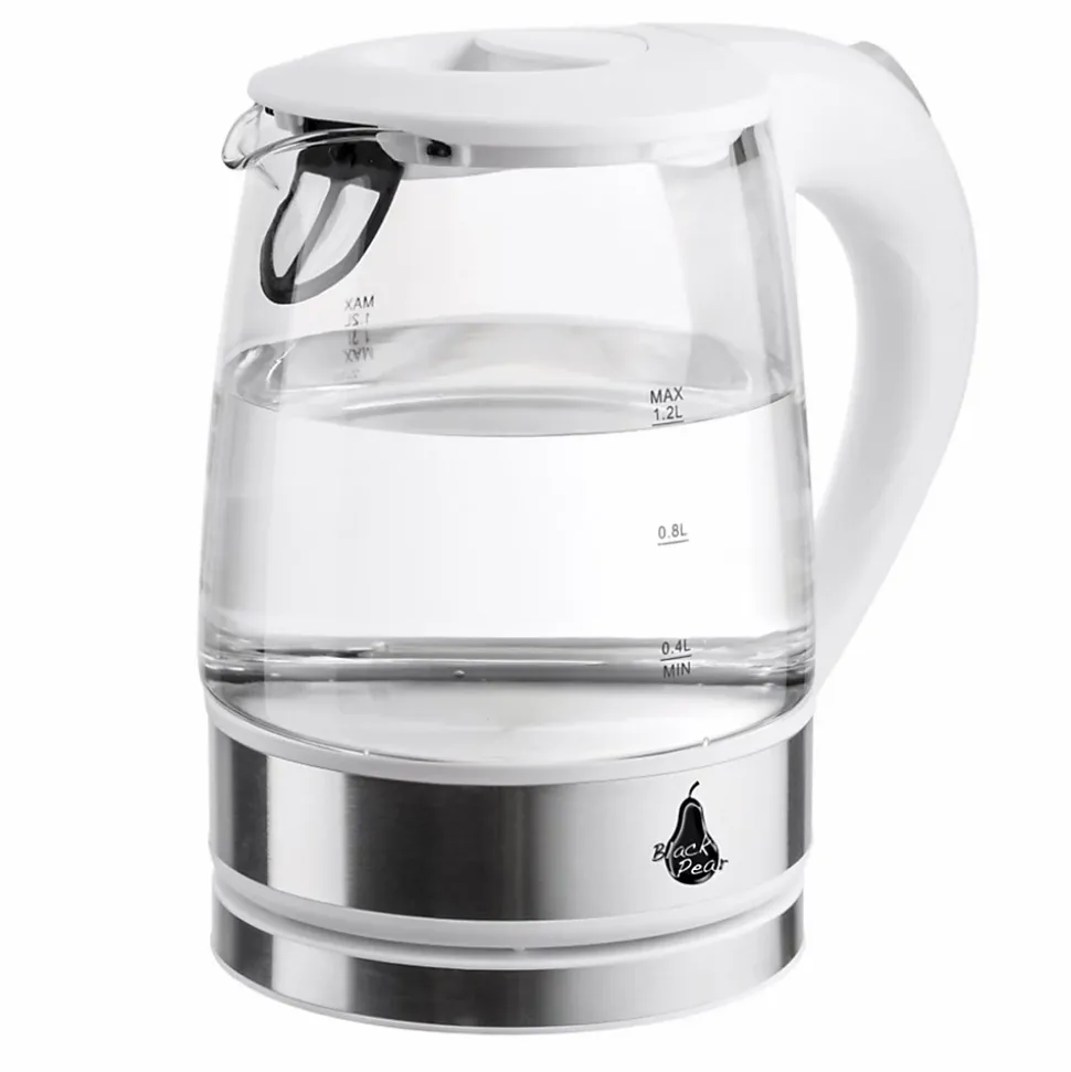 Caractéristiques techniques : – En verre – 2200 Watts Max – Base pivotante 360° – Capacité 1.7 Litres – Protection Anti Surchauffe – Arret automatique – Niveau d’eau visible – Filtre anti calcaire amovible et lavable – Interrupteur On/Off – 220-240V.50/60Hz – Dim. Avec boite en cm : 22X24X17.5 – Poids : 0.900 kg…
