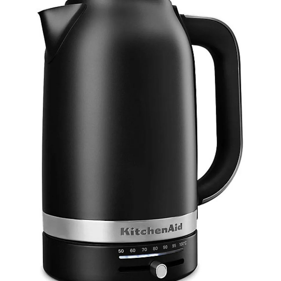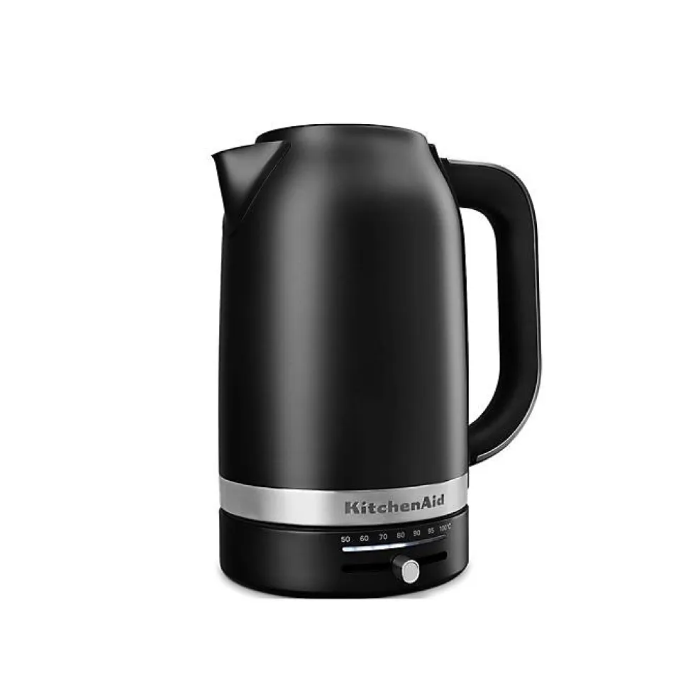 La bouilloire KITCHENAID 5KEK1701EBM de 1,7 L offre un contrôle de température de 50 à 100°C. Avec son boîtier en acier inoxydable et sa rotation à 360°, elle est parfaite pour préparer vos boissons chaudes. Puissance de 2000 à 2400 W, elle allie performance et design.